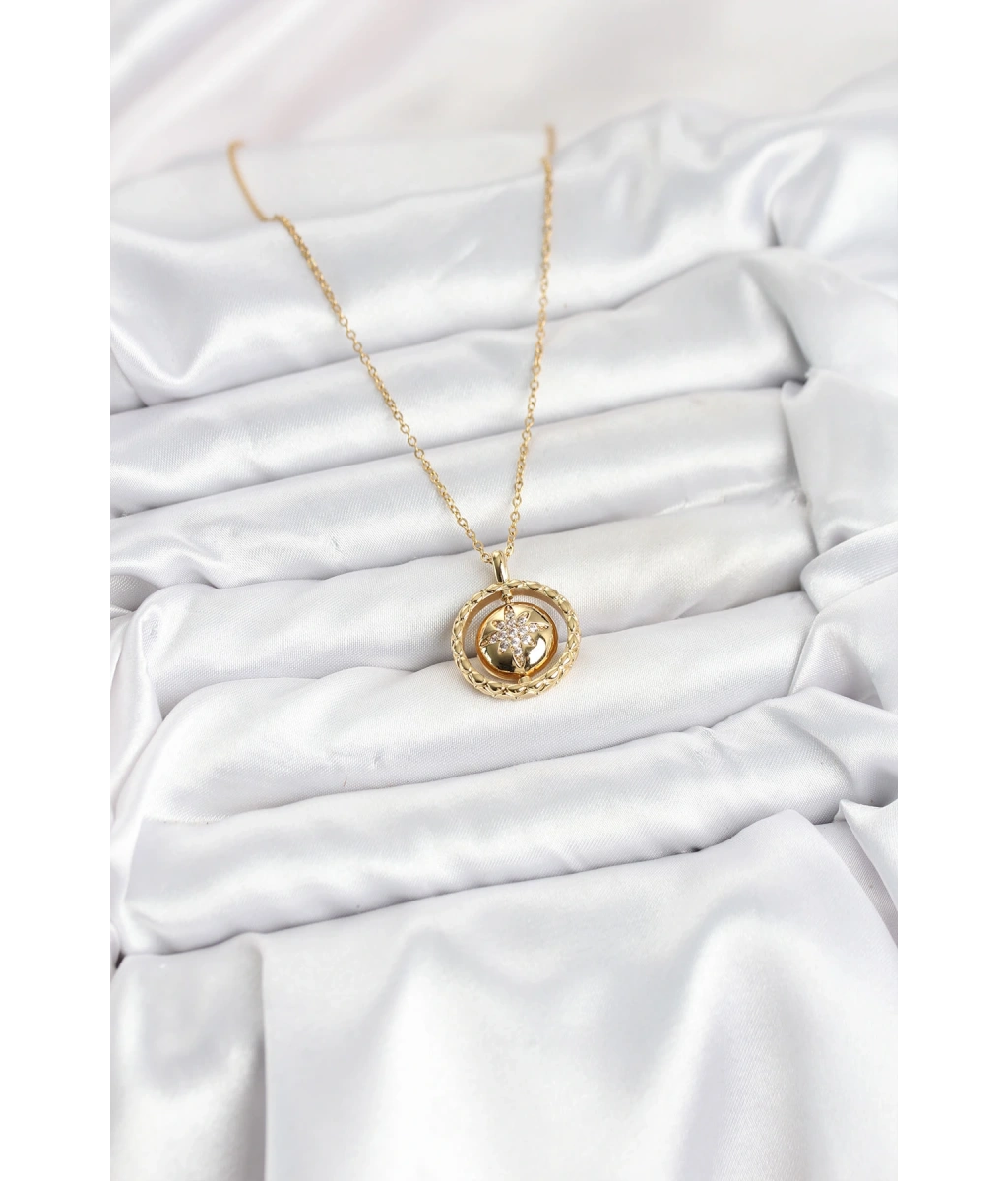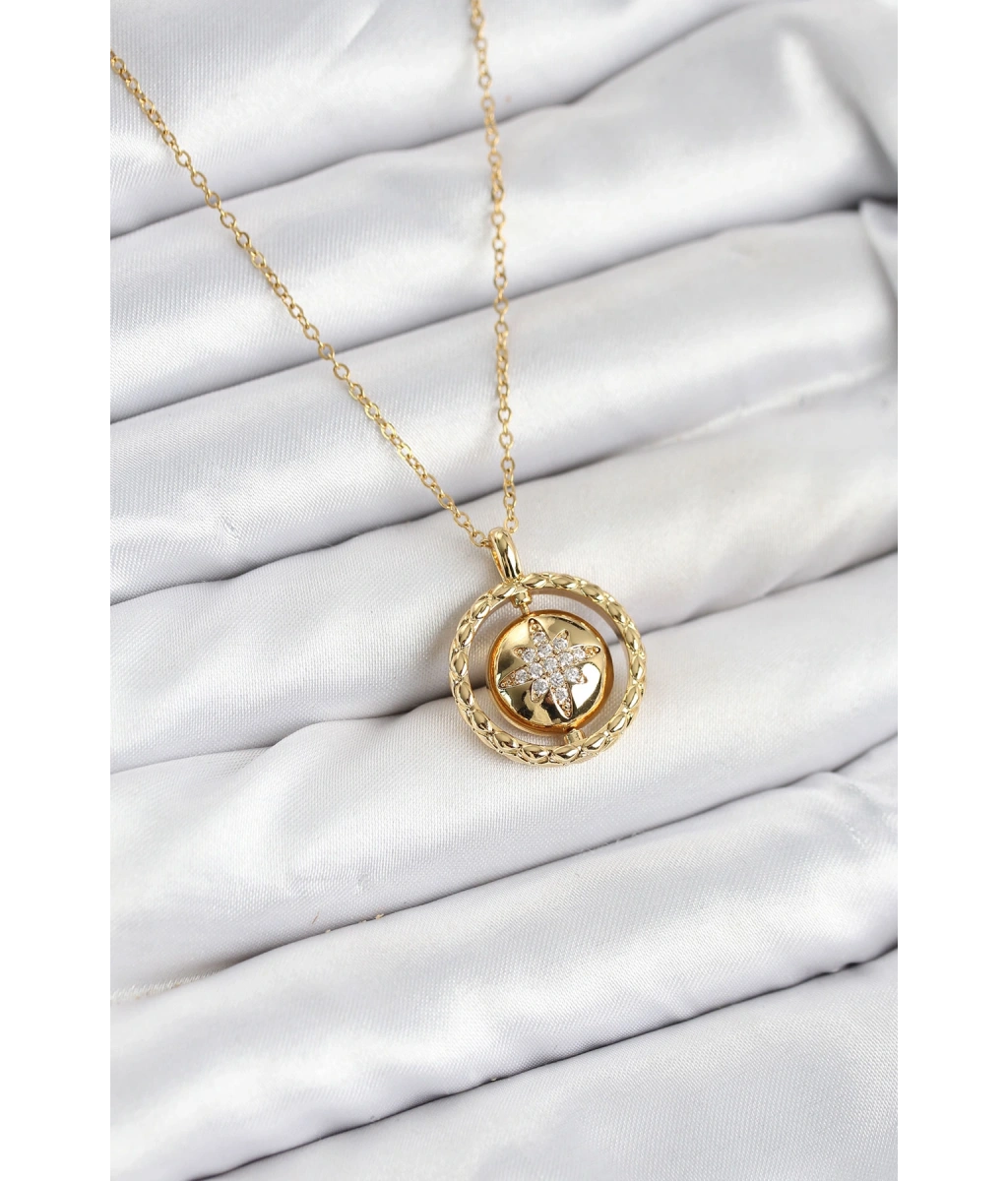 Shoecide 316l Çelik Zincir Gold Renk Kutup Yıldızı Model Zirkon Taşlı Kadın Kolye