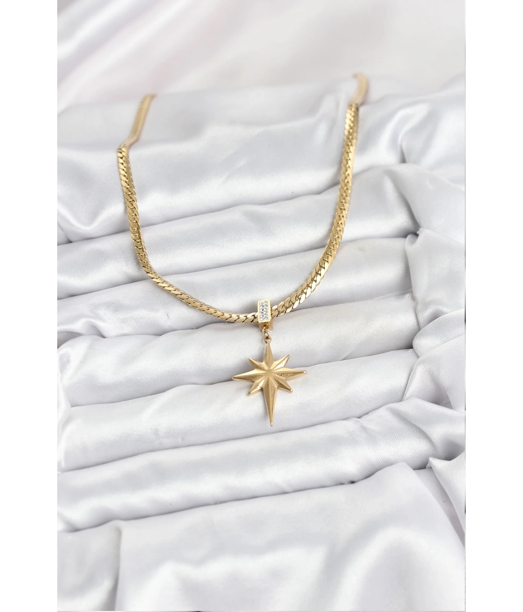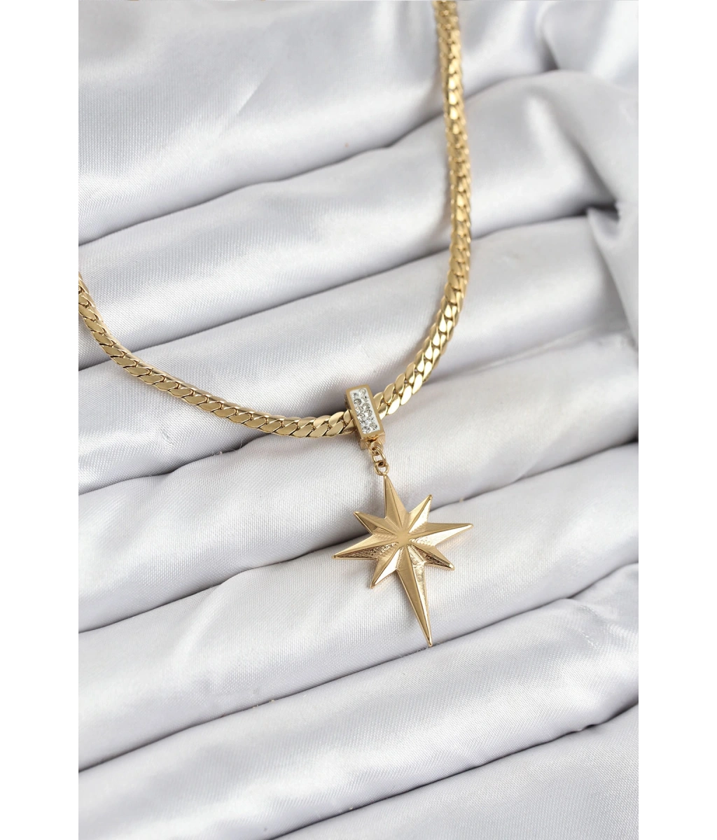 Shoecide 316l Çelik Zincir Gold Renk Kutup Yıldızı Model Zirkon Taşlı Kadın Kolye
