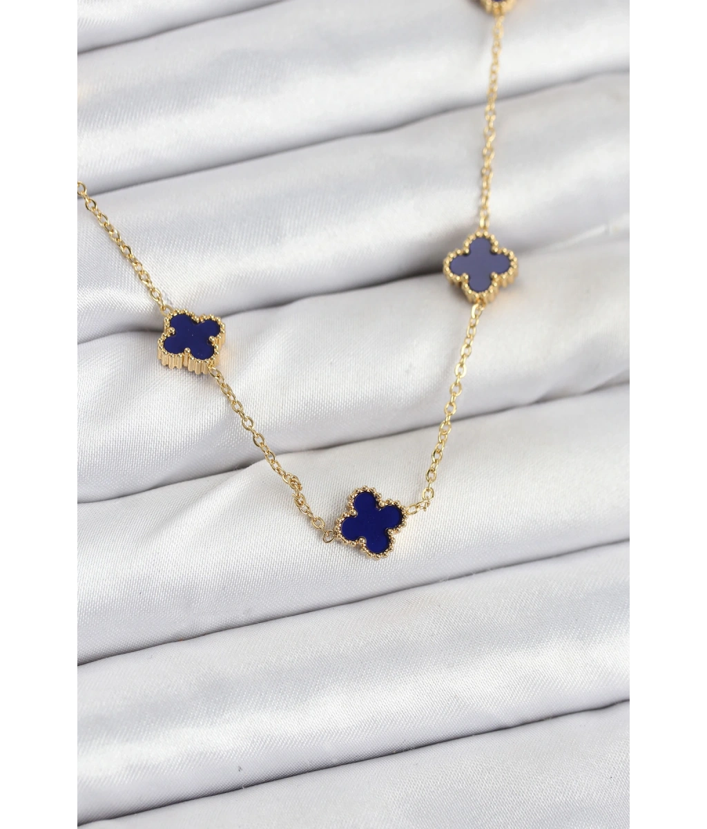 Shoecide 316l Çelik Zincir Gold Renk Lacivert Baby Boy Yonca Kadın Kolye