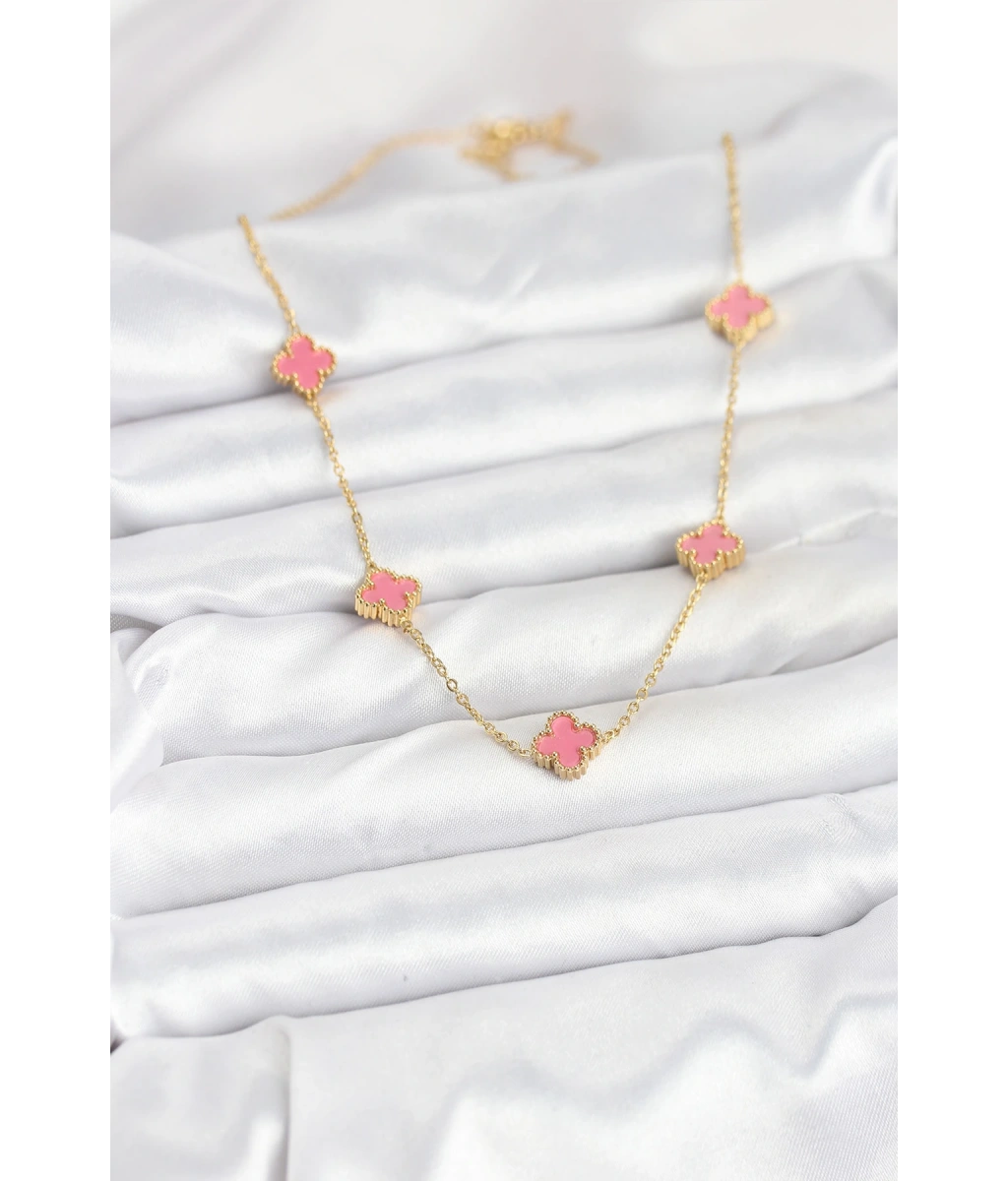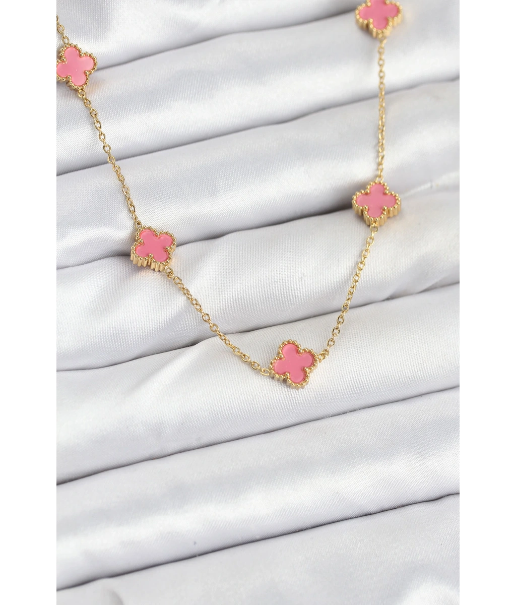 Shoecide 316l Çelik Zincir Gold Renk Pembe Baby Boy Yonca Kadın Kolye