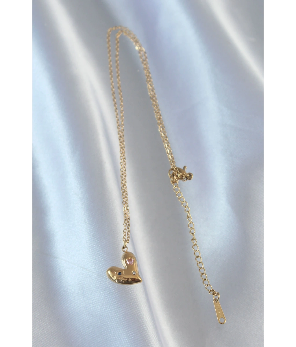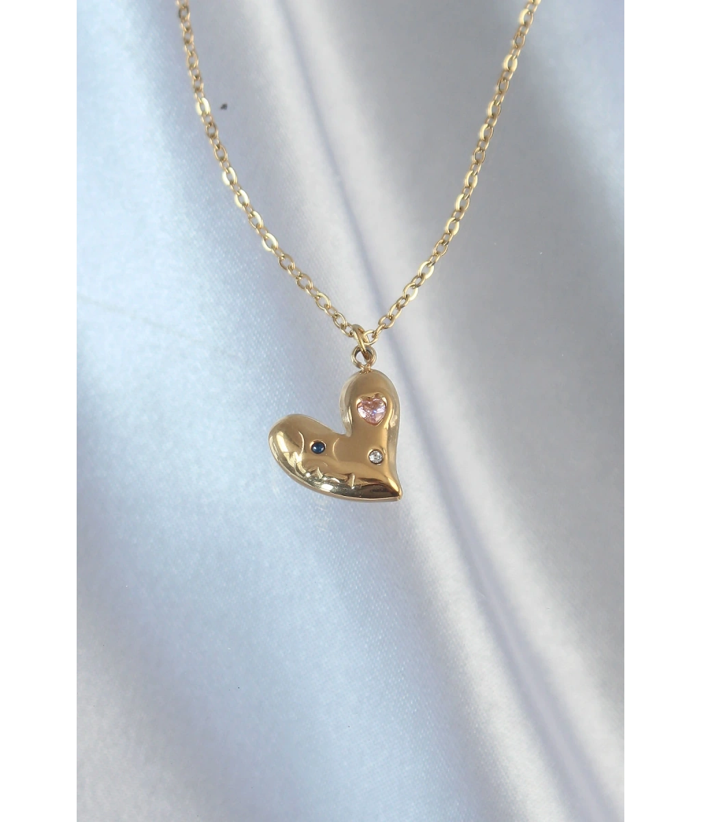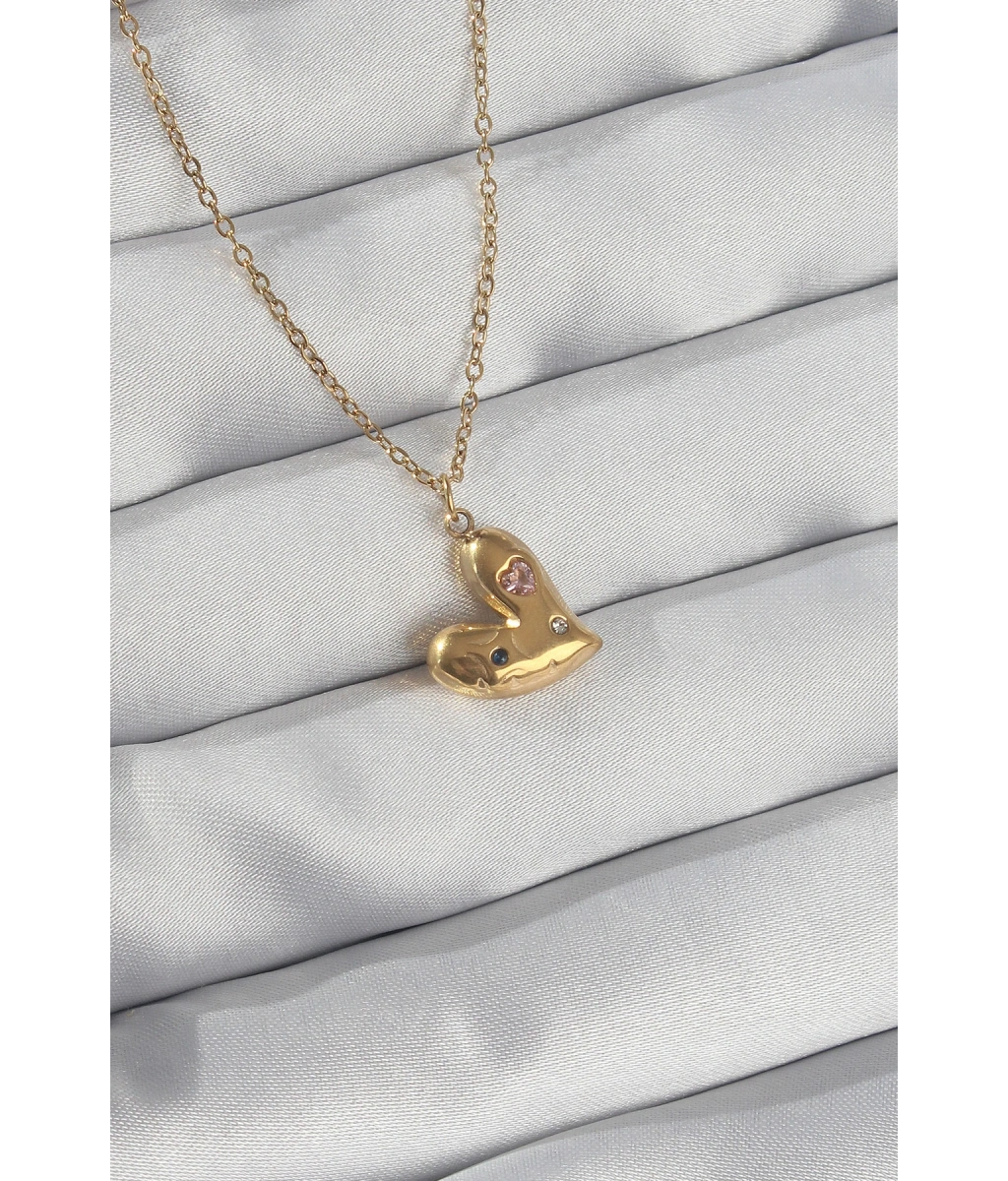 Shoecide 316l Çelik Zincir Gold Renk Renkli Zirkon Taşlı Kalp Kolye