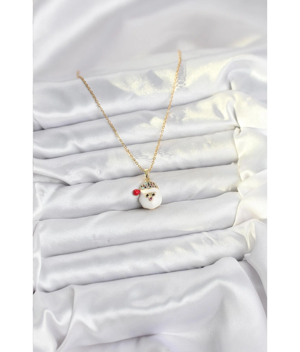 Shoecide 316l Çelik Zincir Gold Zirkon Taşlı Yılbaşı Temalı Kadın Kolye