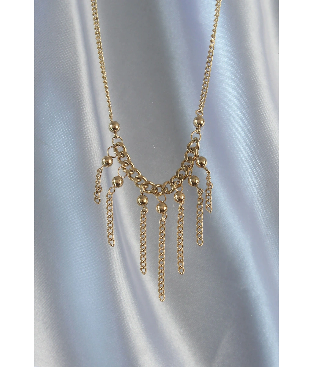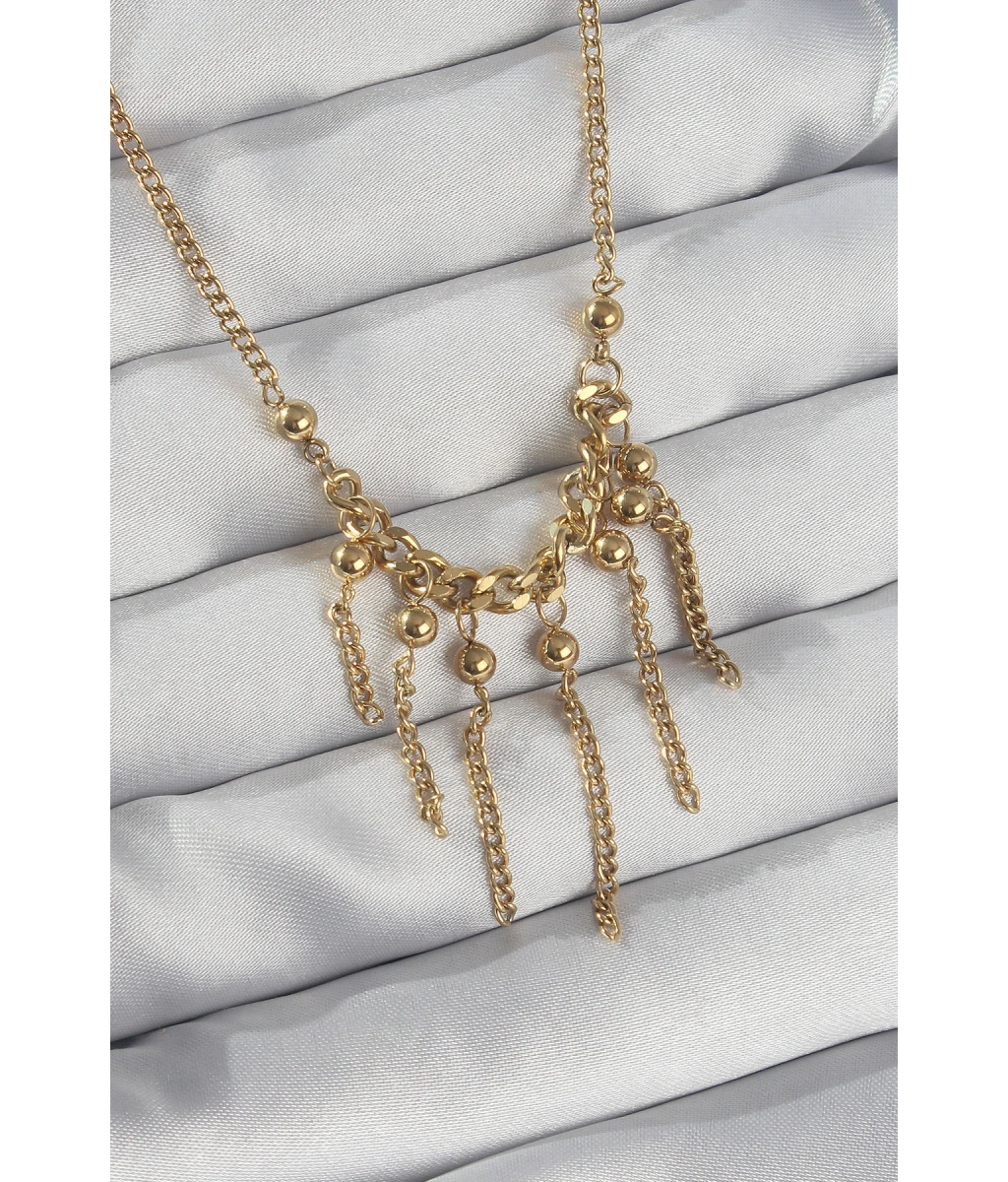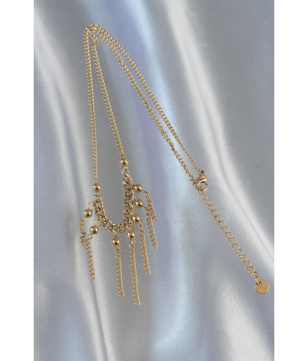 Shoecide 316l Çelik Zincir Gold Renk Topçuk Detay Sallantılı Zincir Kolye