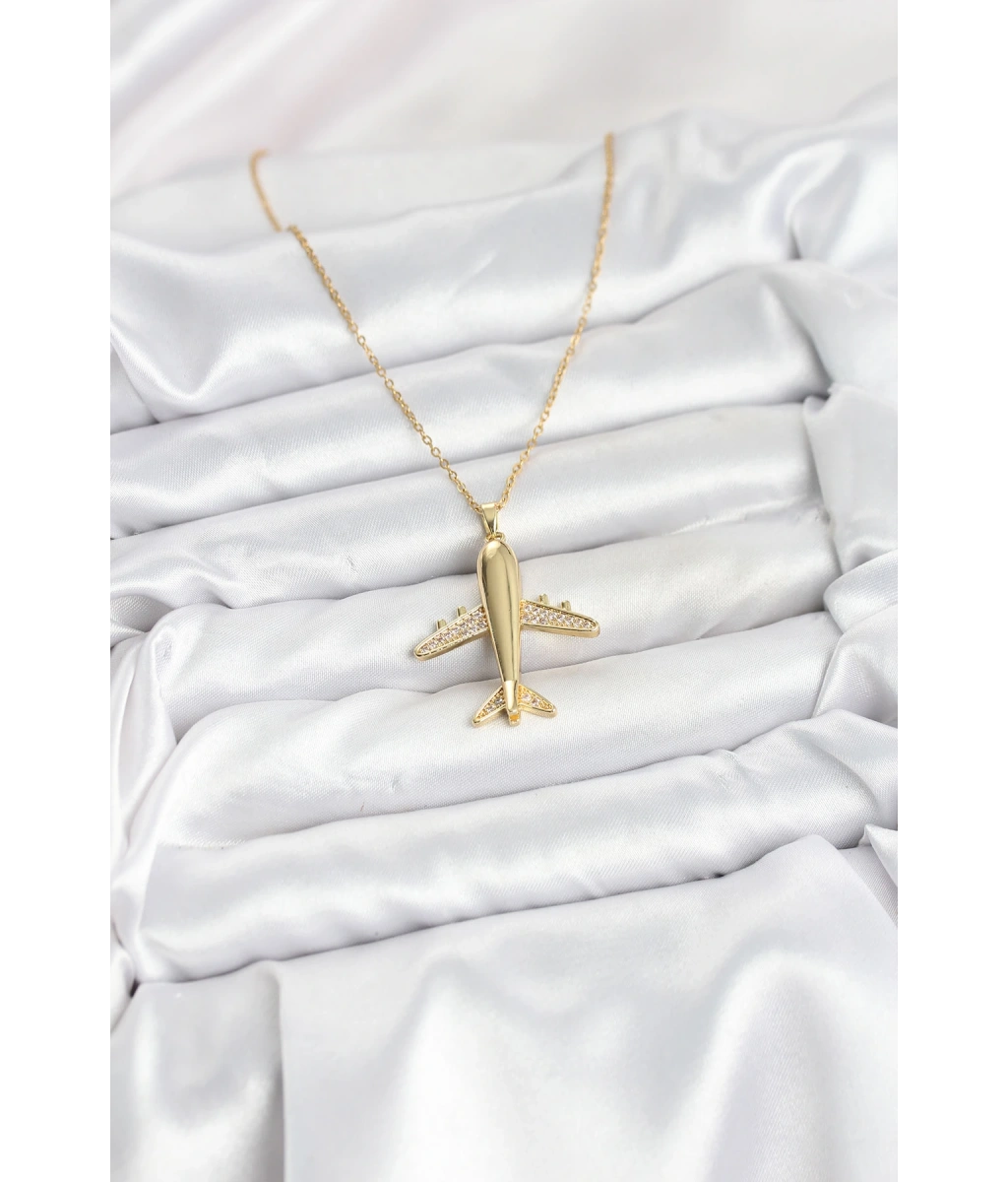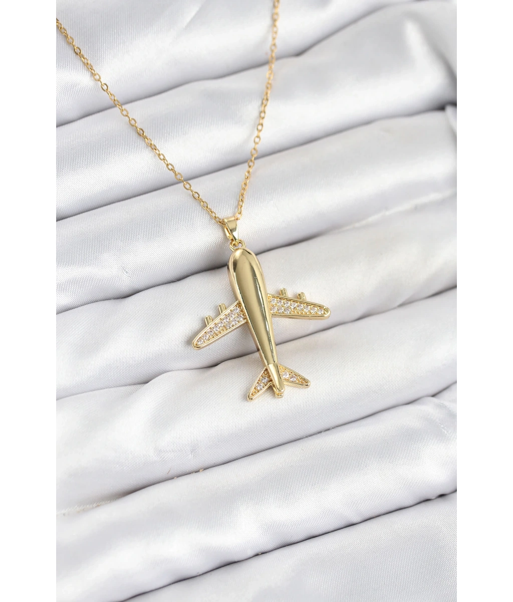 Shoecide 316l Çelik Zincir Gold Renk Uçak Model Kadın Kolye