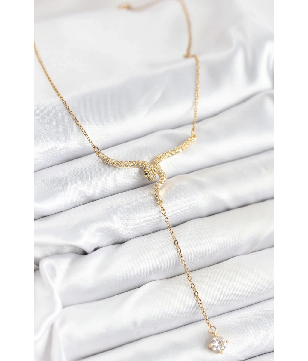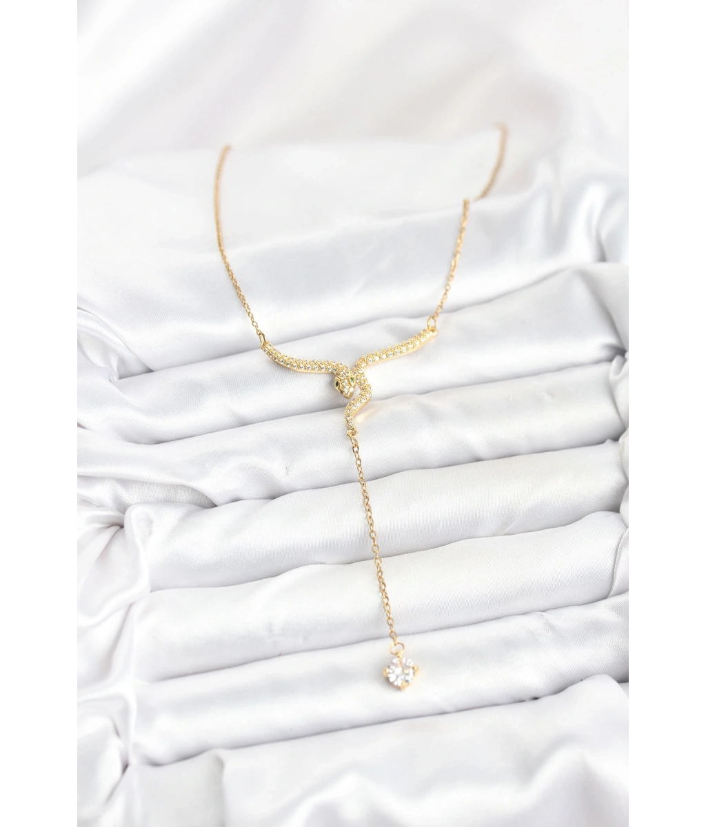 Shoecide 316l Çelik Zincir Gold Renk Yılan Model Y Kolye