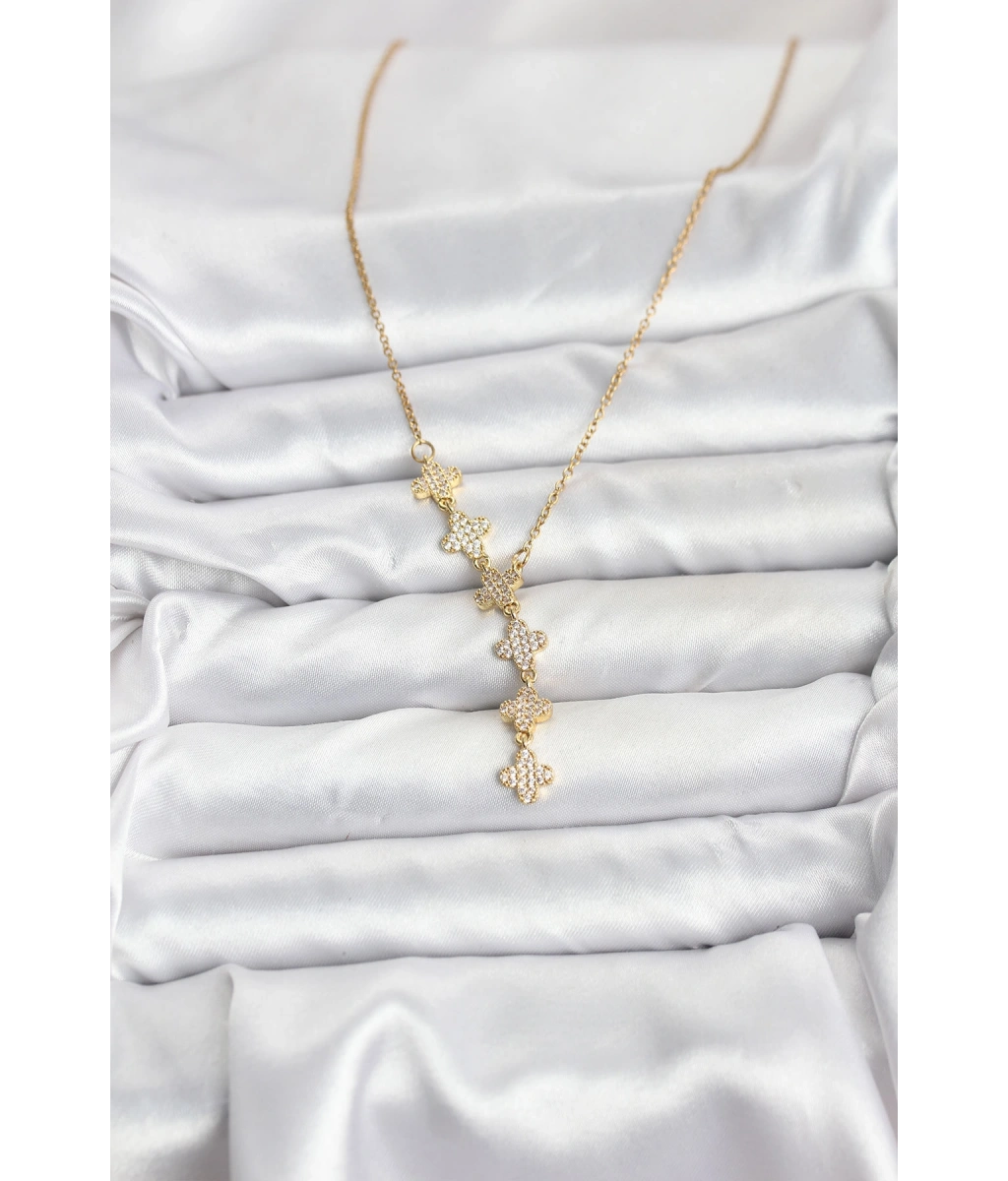 Shoecide 316l Çelik Zincir Gold Renk Yonca Model Kadın Kolye
