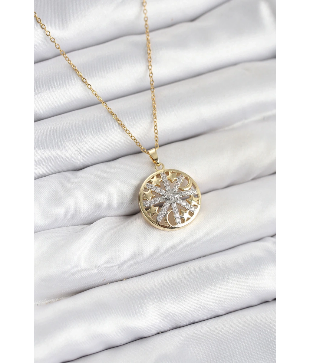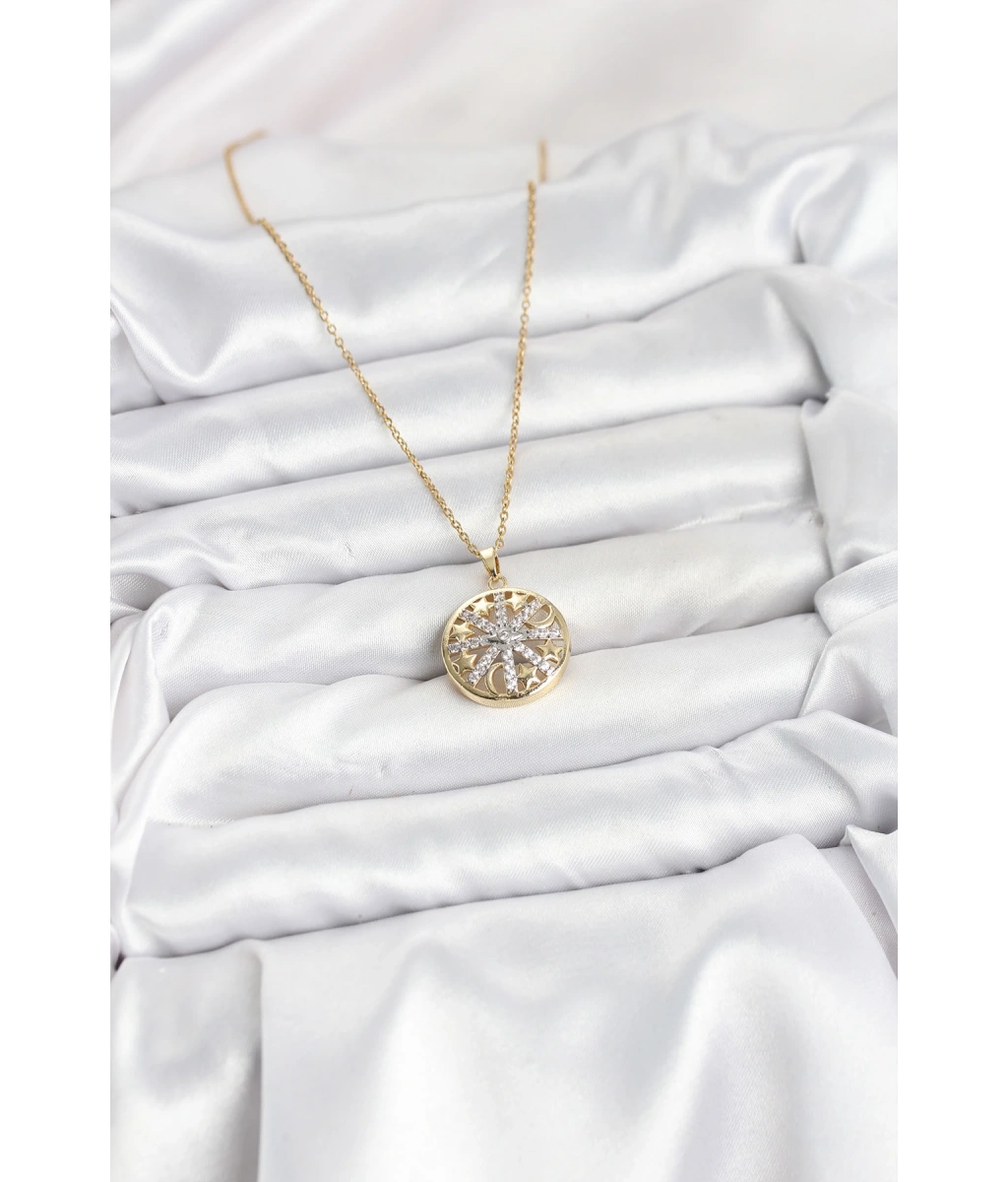 Shoecide 316l Çelik Zincir Gold Renk Kutup Yıldızı Model Zirkon Taşlı Kadın Kolye
