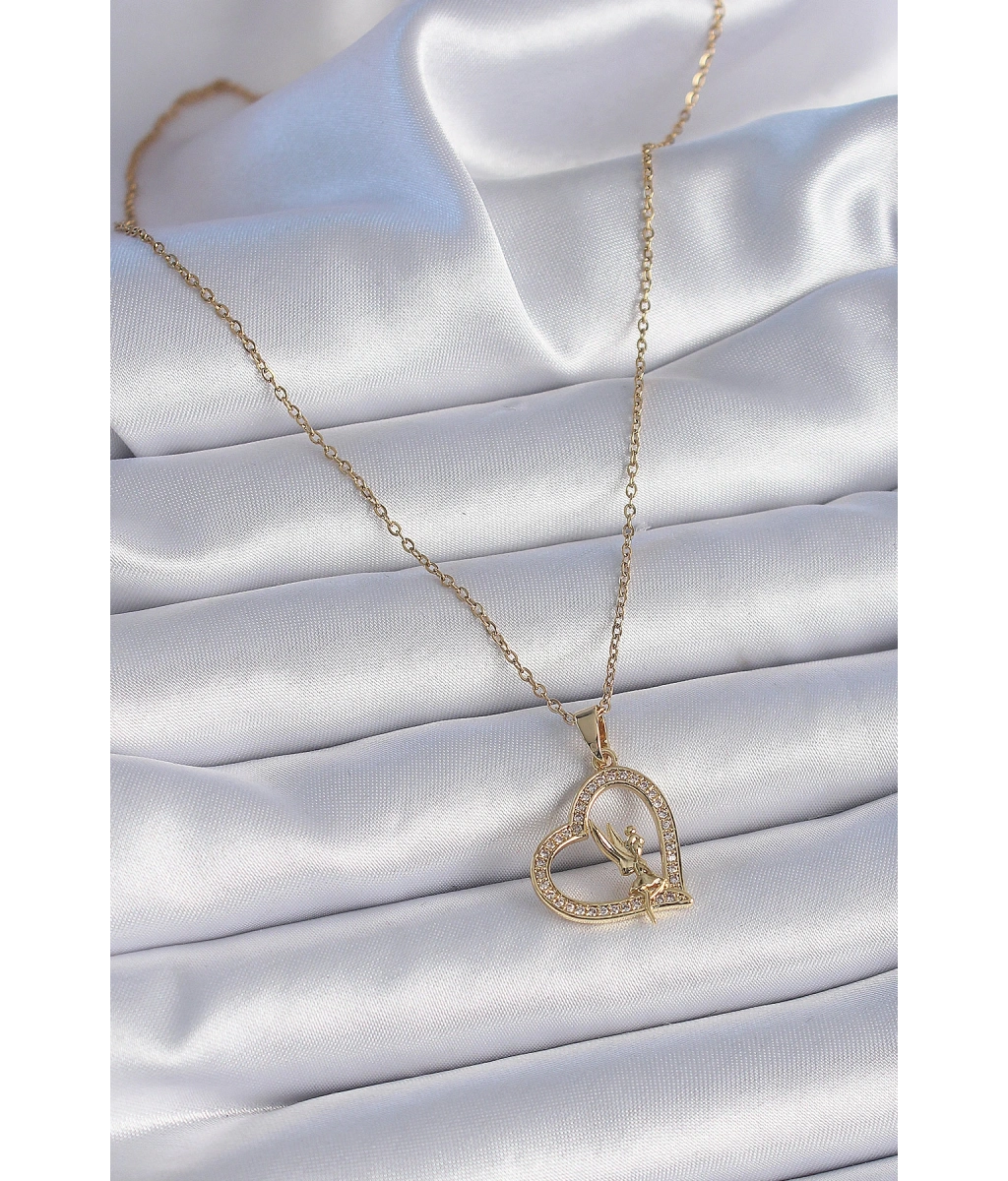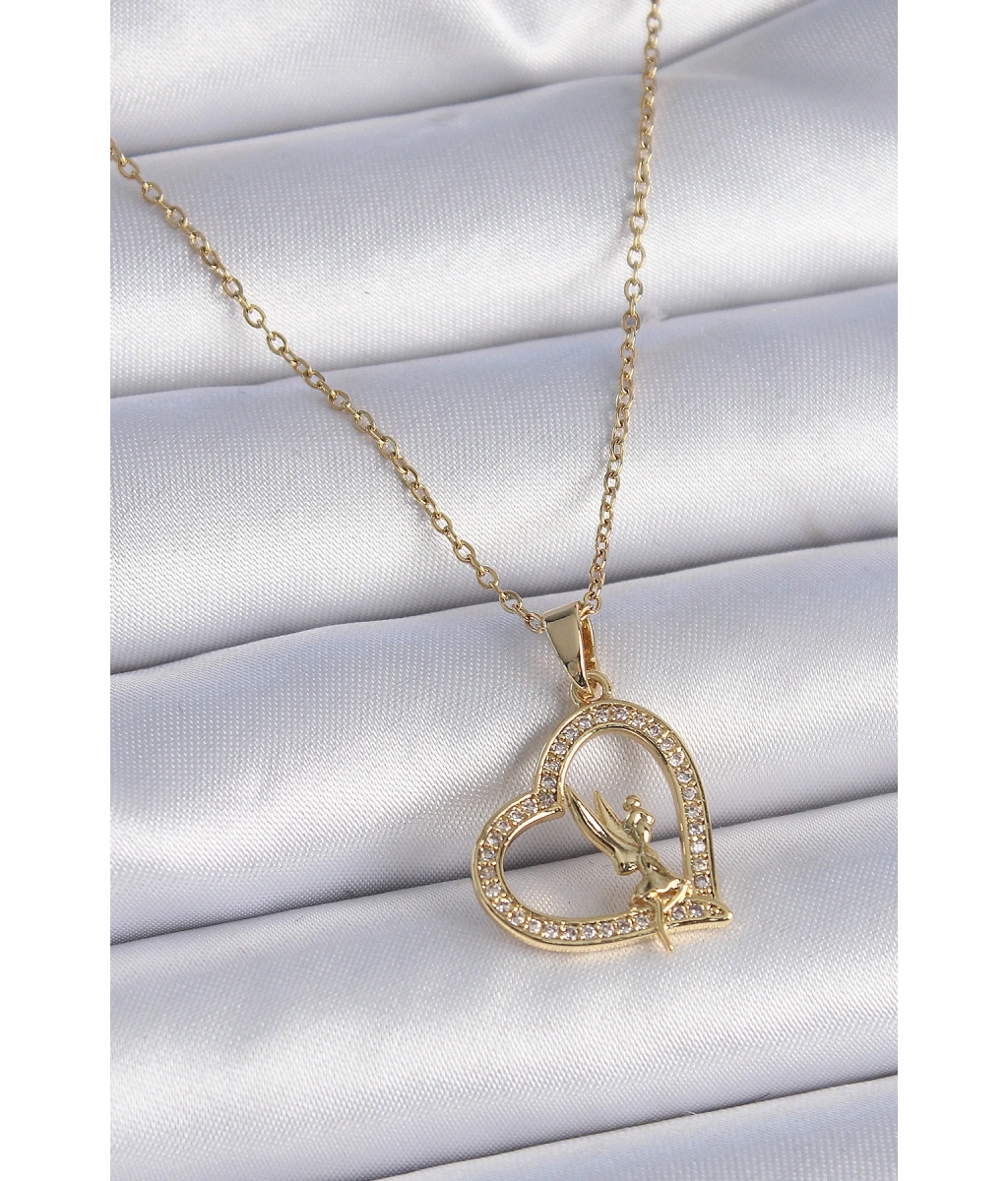 Shoecide 316l Çelik Zincir Gold Renk Zirkon Taşlı Kalp Model Melek Detay Kadın Kolye