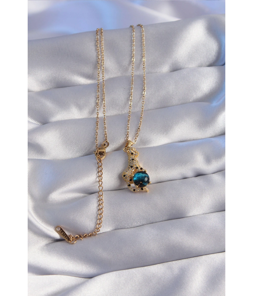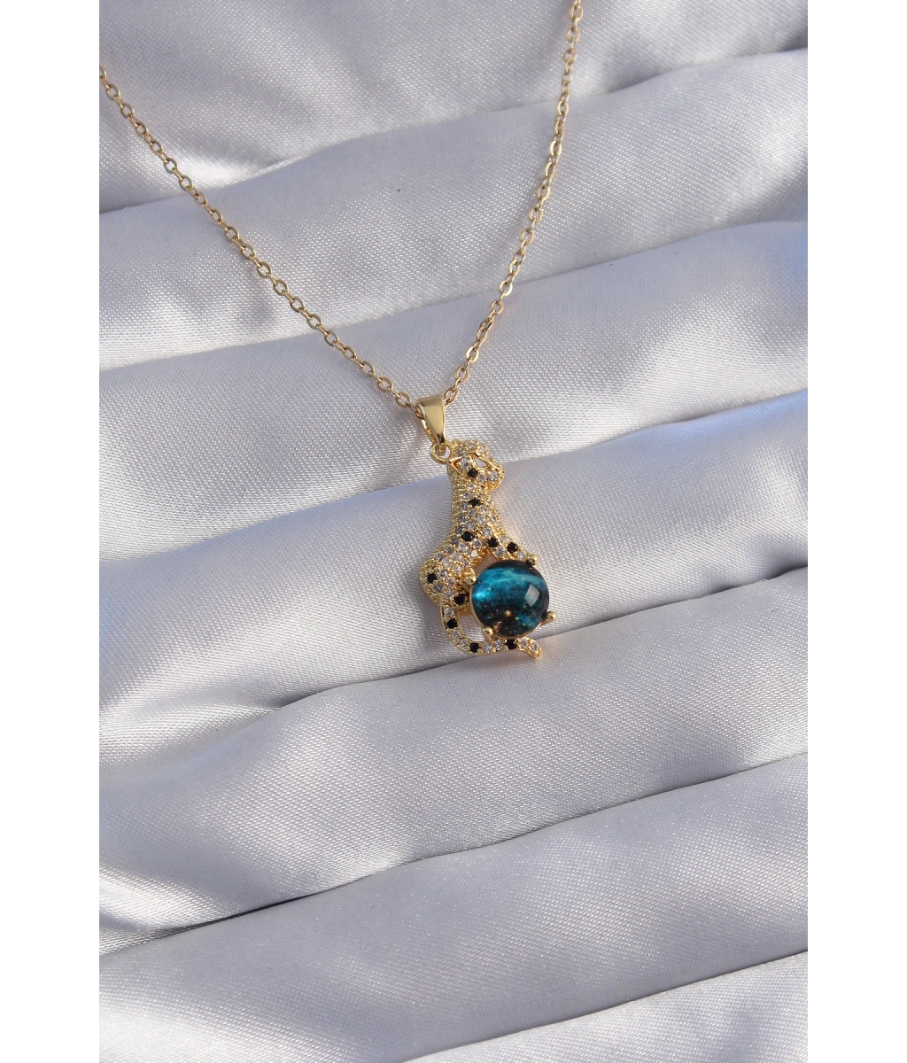 Shoecide 316l Çelik Zincir Gold Renk Zirkon Taşlı Panter Figürlü Gezegen Kolye