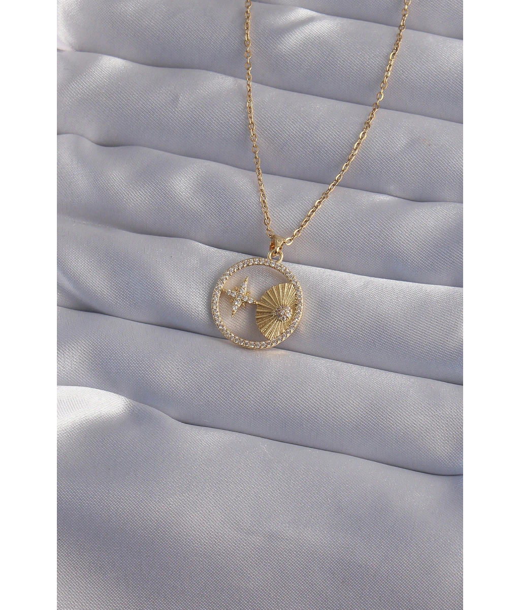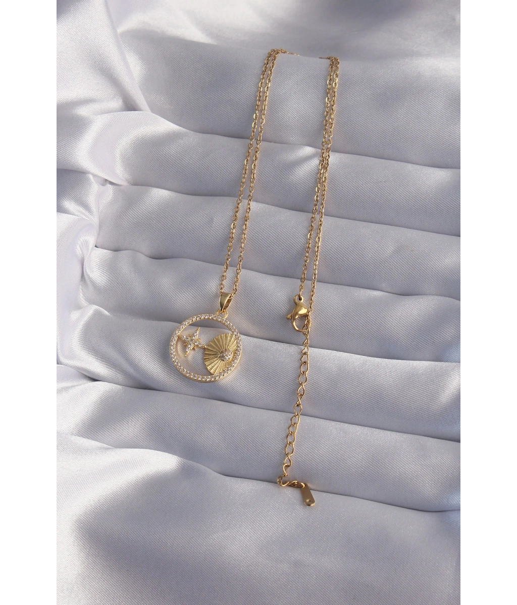 Shoecide Pirinç Gold Renk Zirkon Taşlı Kutup Yıldızı Model Kadın Kolye