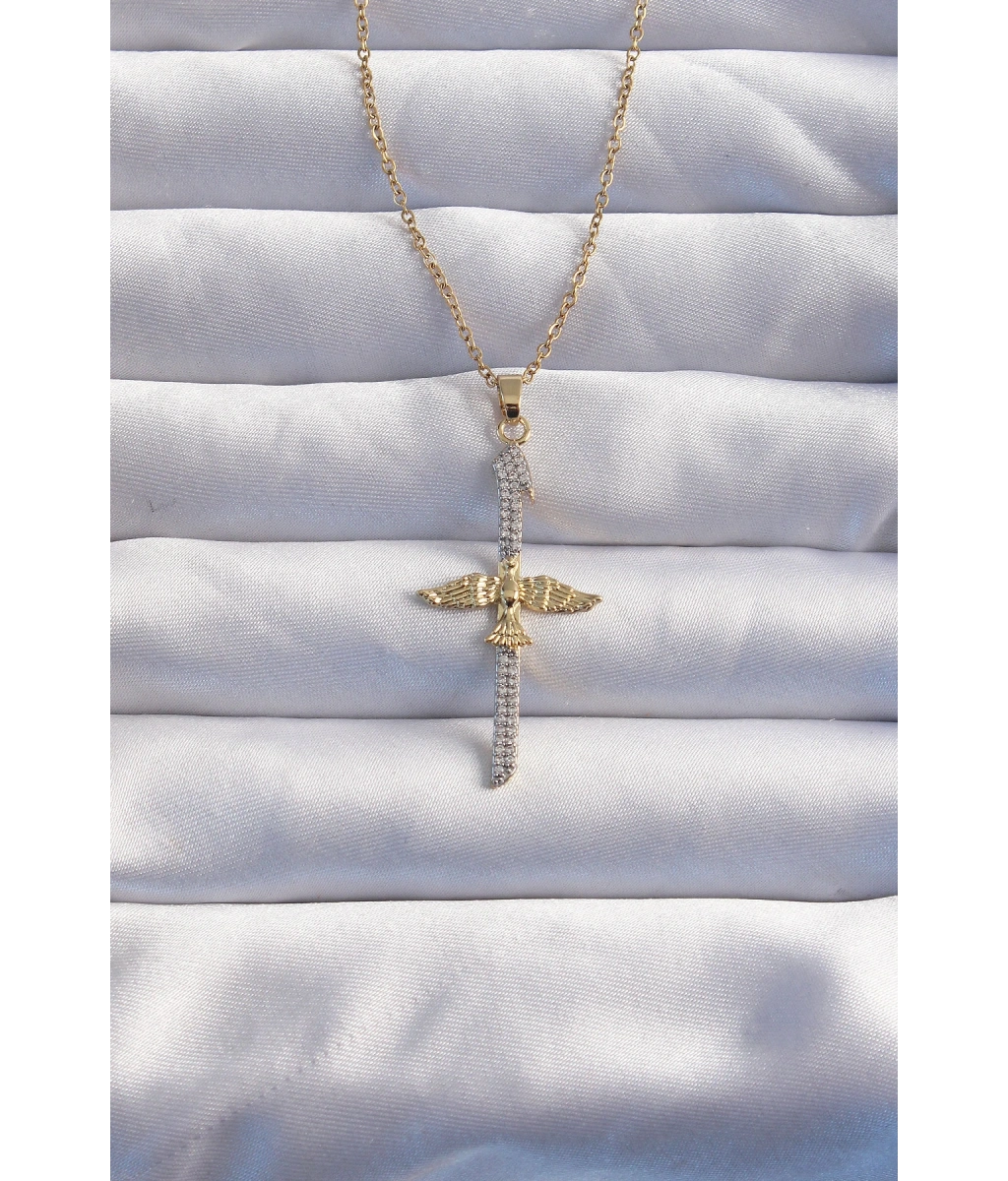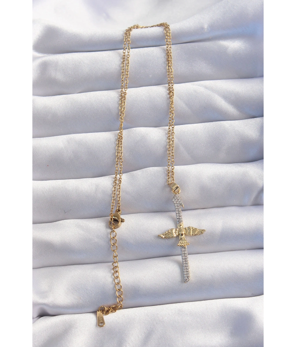 Shoecide 316l Çelik Zincir Gold Renkli Zirkon Taşlı Anka Kuşu Kolye