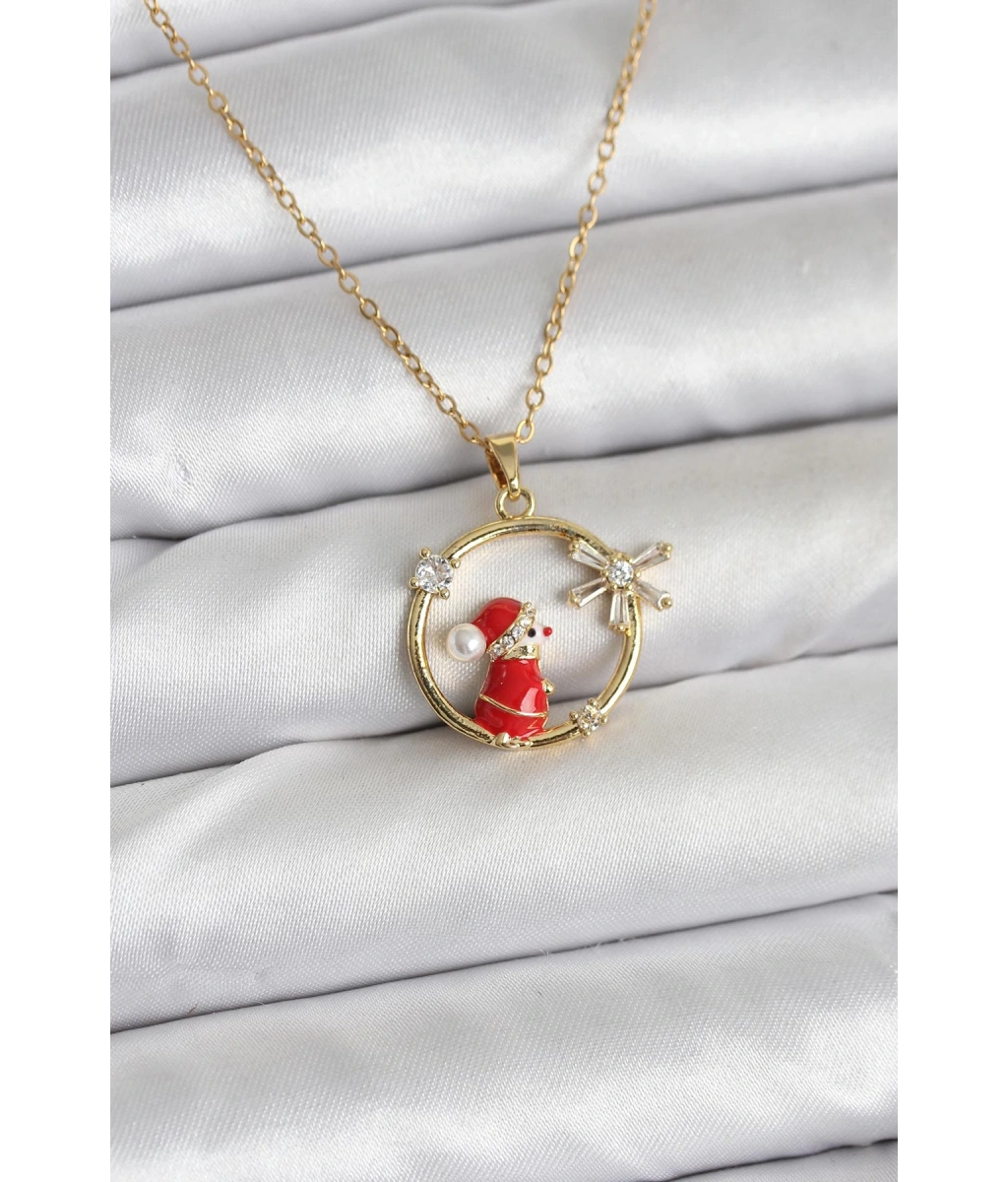 Shoecide 316l Çelik Zincir Gold Renk Kardan Adam Model Yılbaşı Temalı Kadın Kolye