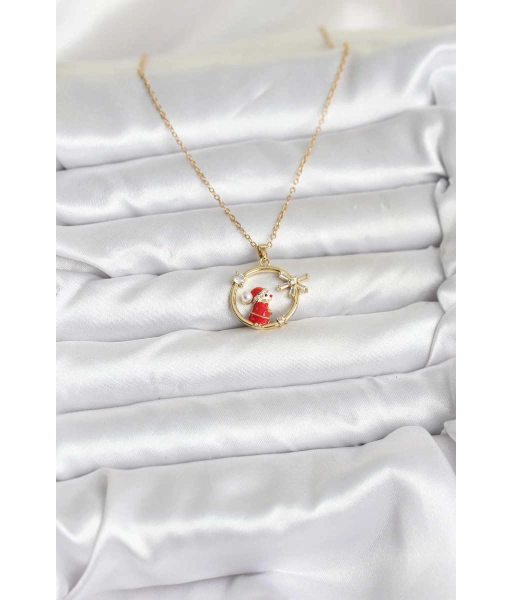 Shoecide 316l Çelik Zincir Gold Renk Kardan Adam Figürlü Yılbaşı Temalı Kadın Kolye