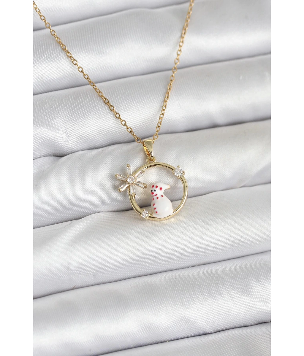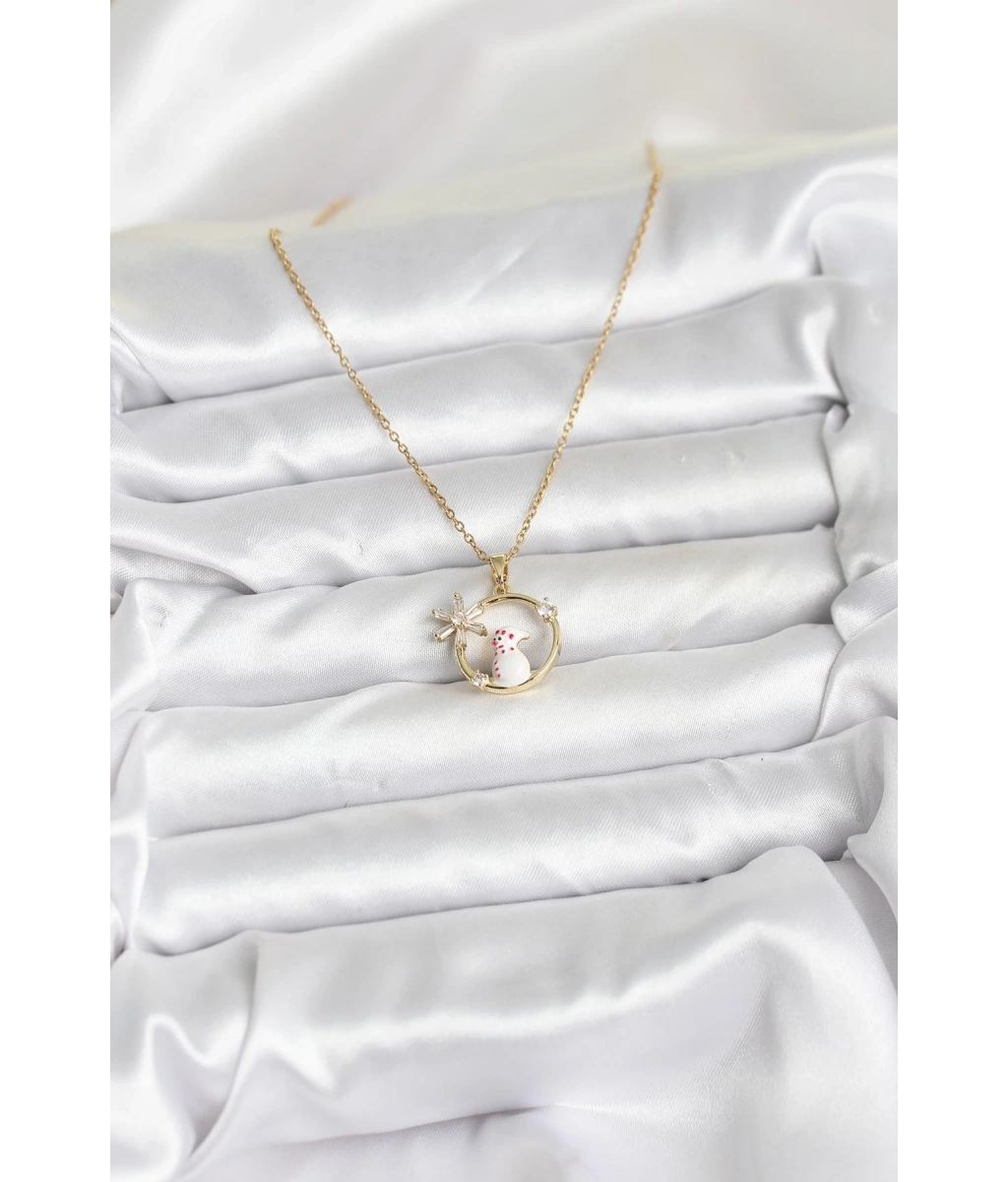 Shoecide 316l Çelik Zincir Gold Renk Kardan Adam Model Yılbaşı Temalı Kadın Kolye