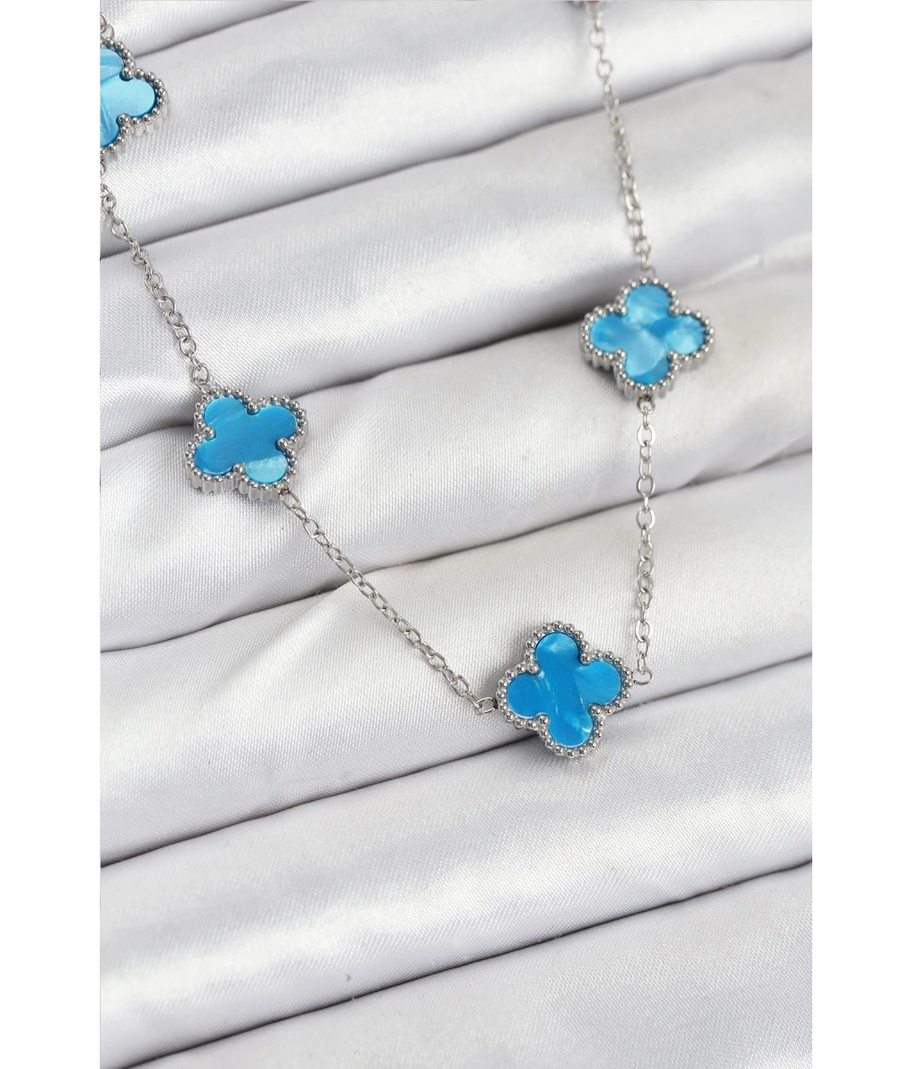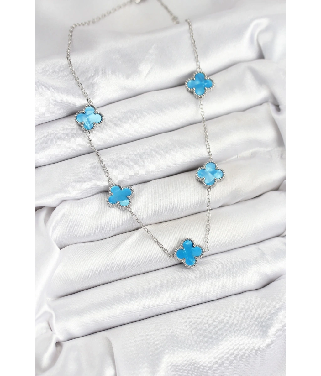 Shoecide 316l Çelik Zincir Gümüş Buz Mavisi Renk Yonca Kadın Kolye