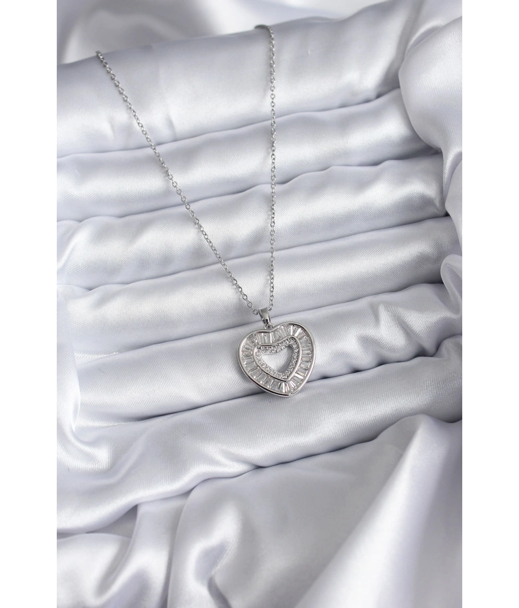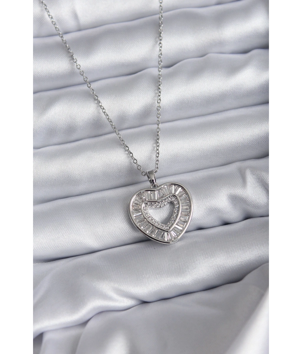 Shoecide 316l Çelik Zincir Gümüş Zirkon Taşlı Kalpli Kadın Kolye