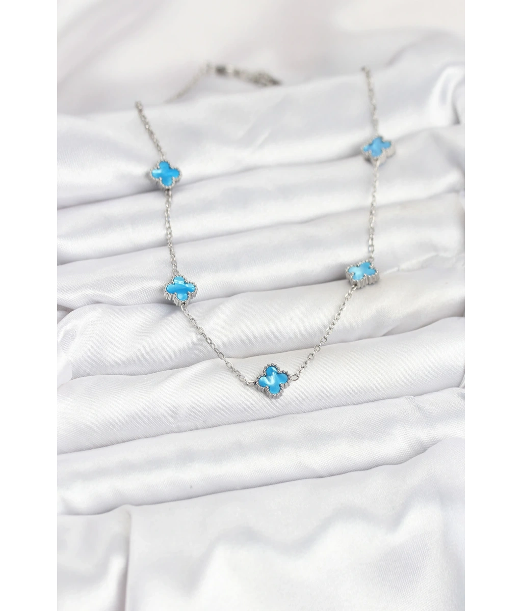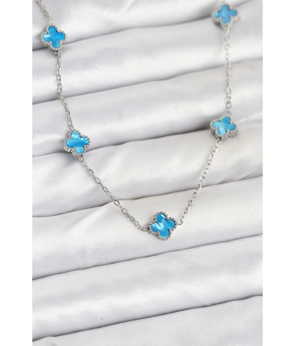 Shoecide 316l Çelik Zincir Gümüş Renk Buz Mavisi Baby Boy Yonca Kadın Kolye