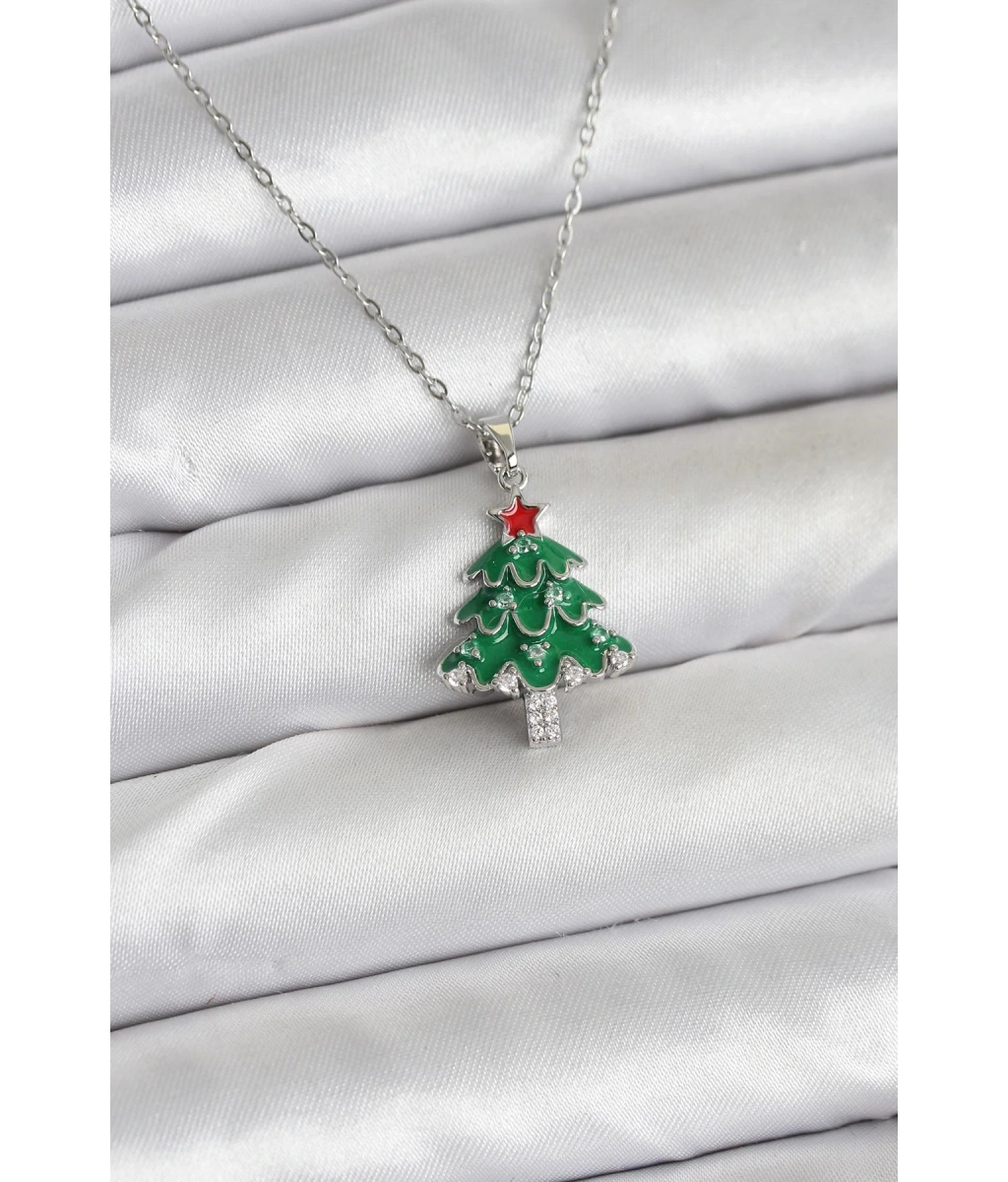 Shoecide 316l Çelik Zincir Gümüş Ren Çam Ağacı Model Zirkon Taşlı Yılbaşı Temalı Kadın Kolye