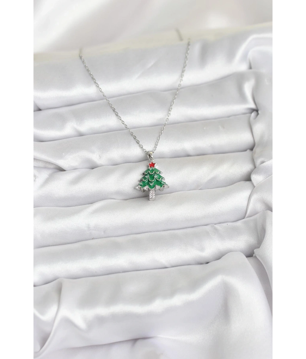 Shoecide 316l Çelik Zincir Gümüş Renk Çam Ağacı Model Yılbaşı Temalı Kadın Kolye