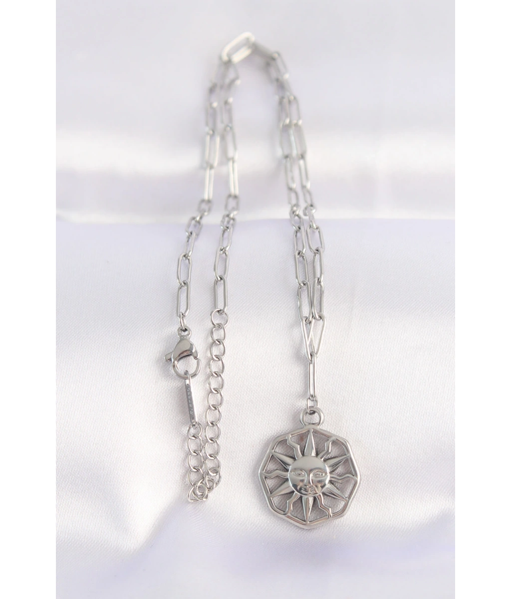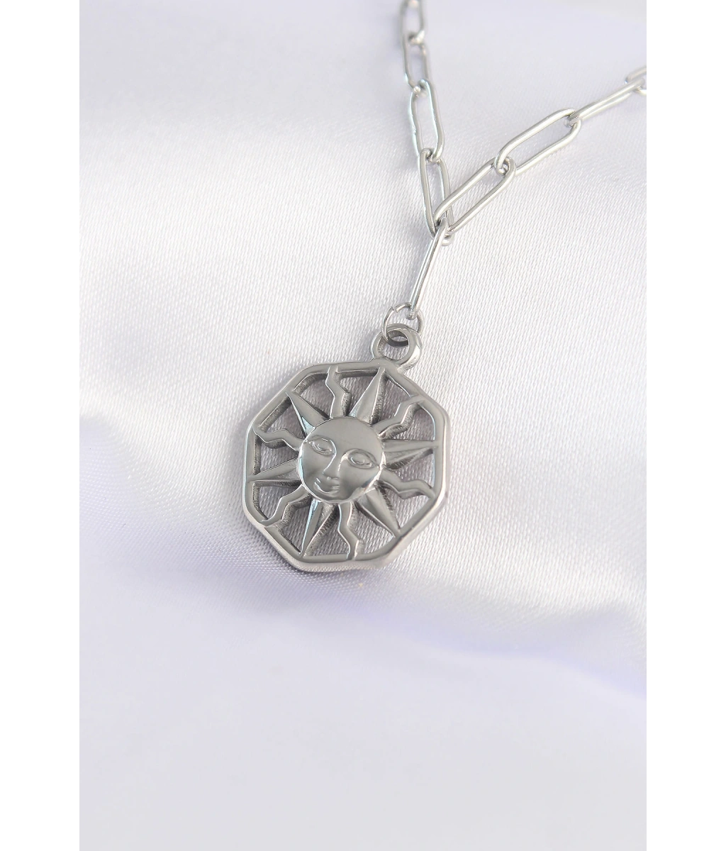 Shoecide 316l Çelik Zincir Gümüş Renk Güneş Kolye