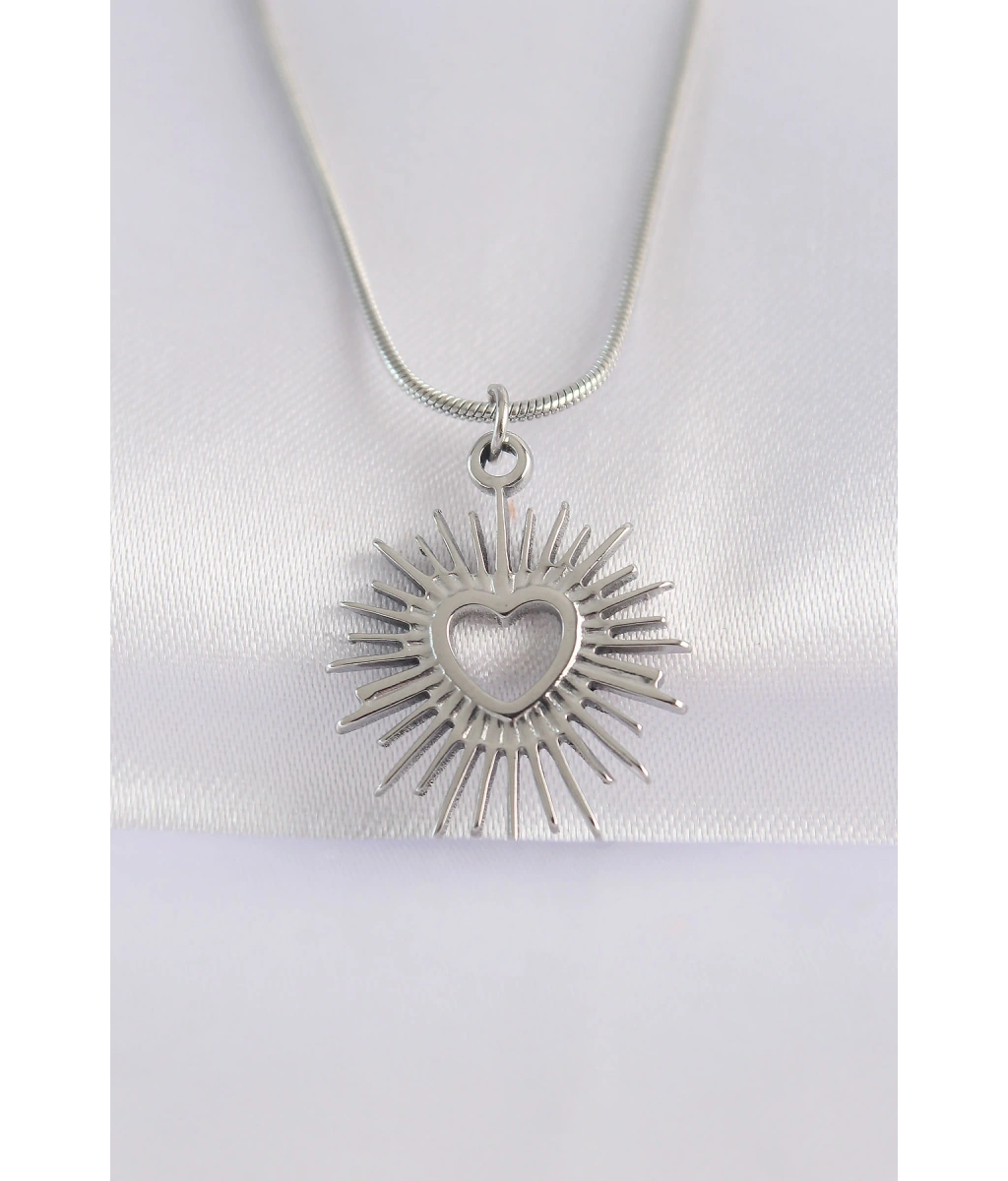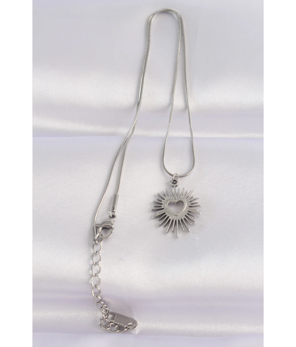 Shoecide 316l Çelik Zincir Gümüş Renk Kalp Güneşi Tasarımlı Kolye