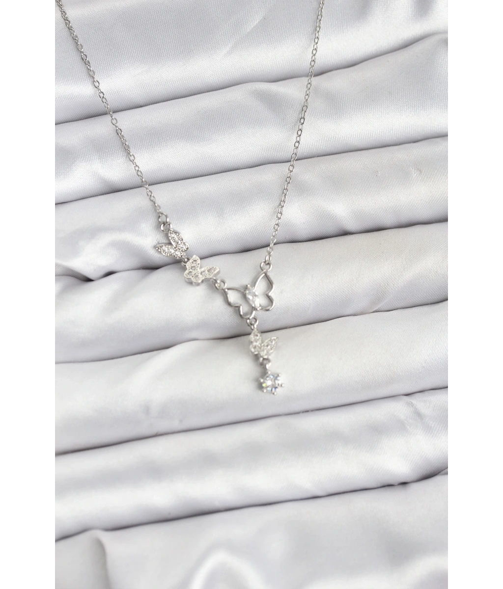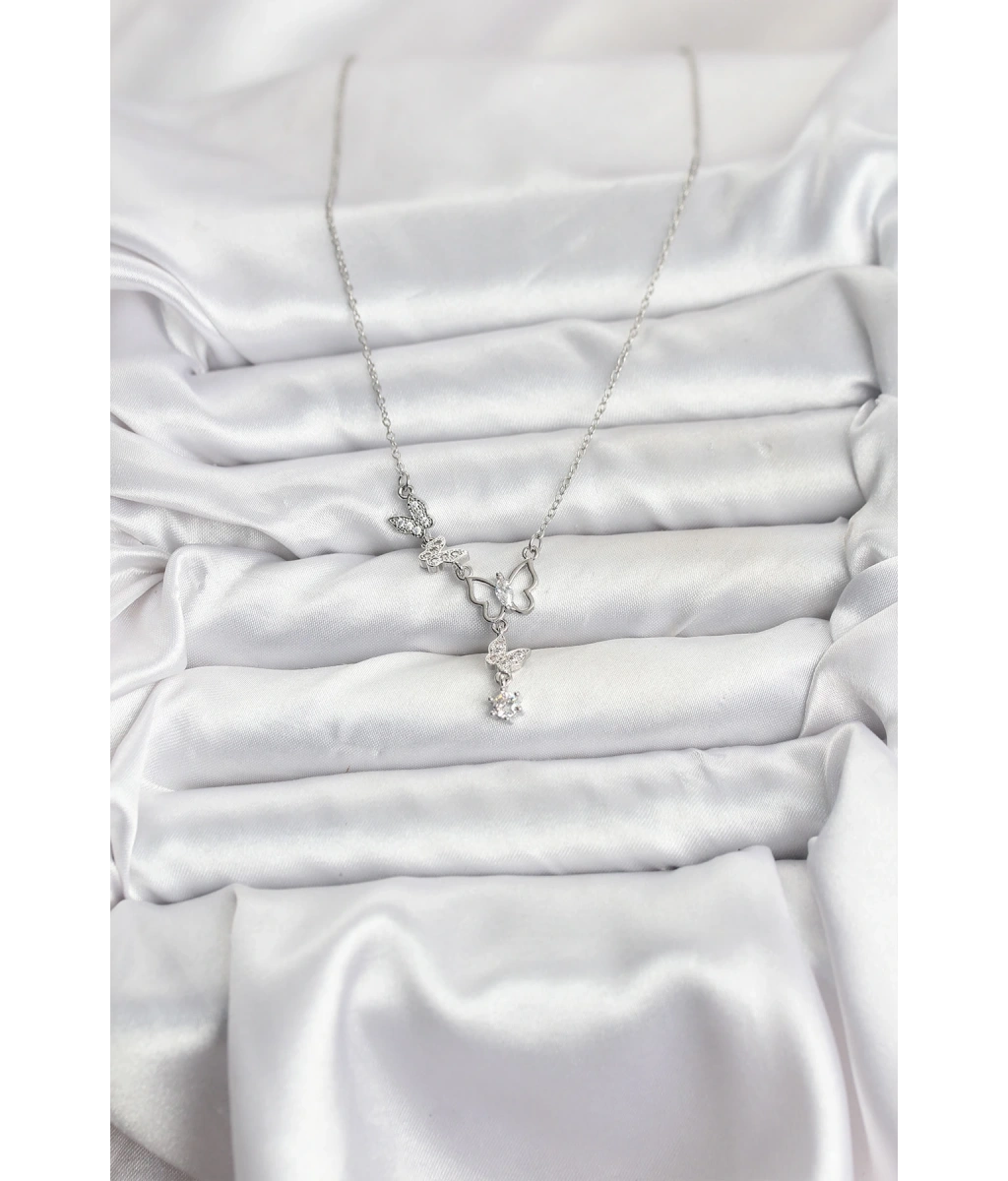 Shoecide 316l Çelik Zincir Gümüş Renk Kelebek Model Kadın Kolye