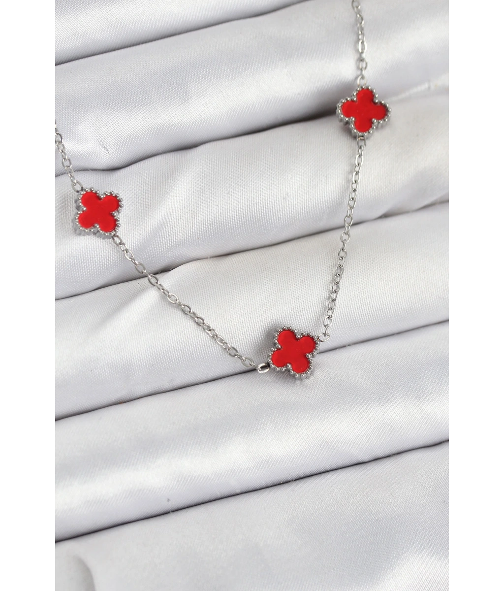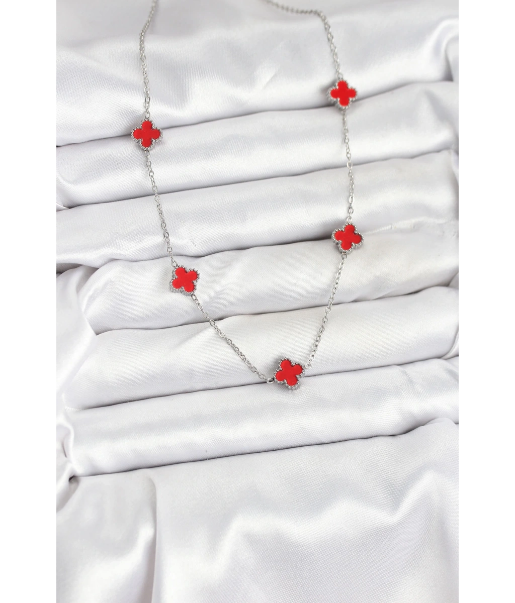 Shoecide 316l Çelik Zincir Gümüş Renk Kırmızı Baby Boy Yonca Kadın Kolye