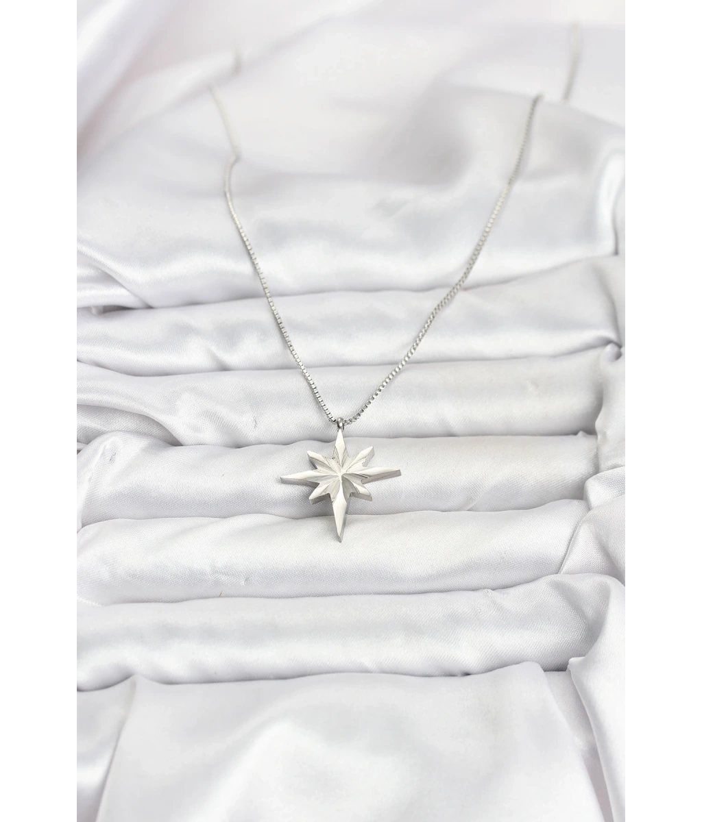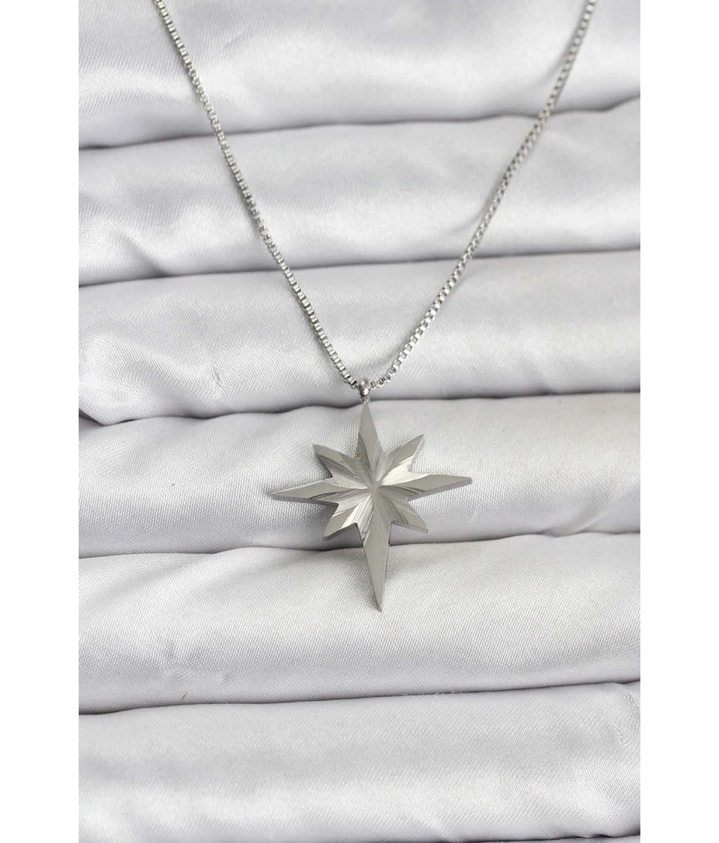 Shoecide 316l Çelik Zincir Gümüş Renk Kutup Yıldızı Model 60 Cm Zincir Kadın Kolye
