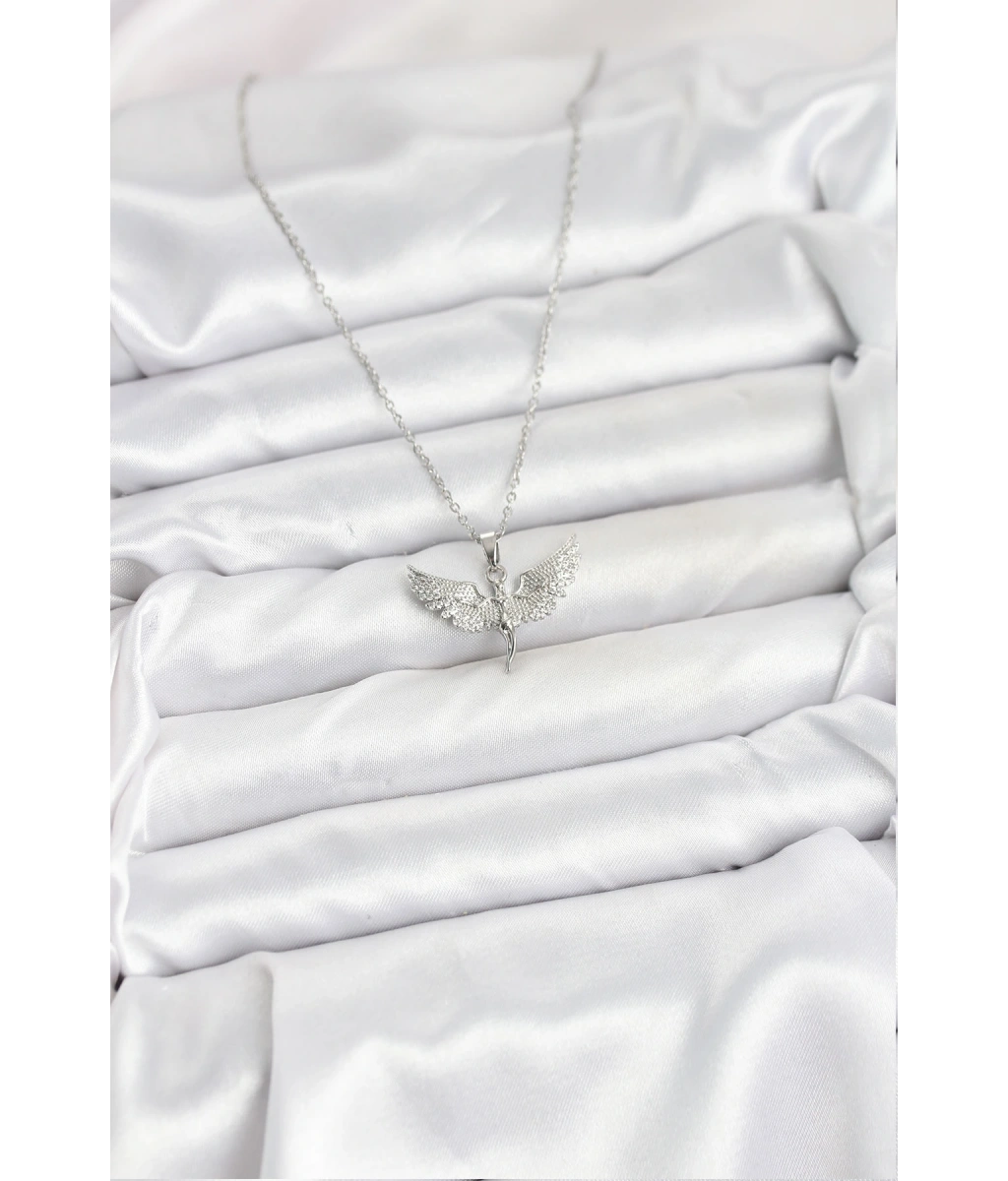Shoecide 316l Çelik Zincir Gümüş Renk Melek Model Kadın Kolye