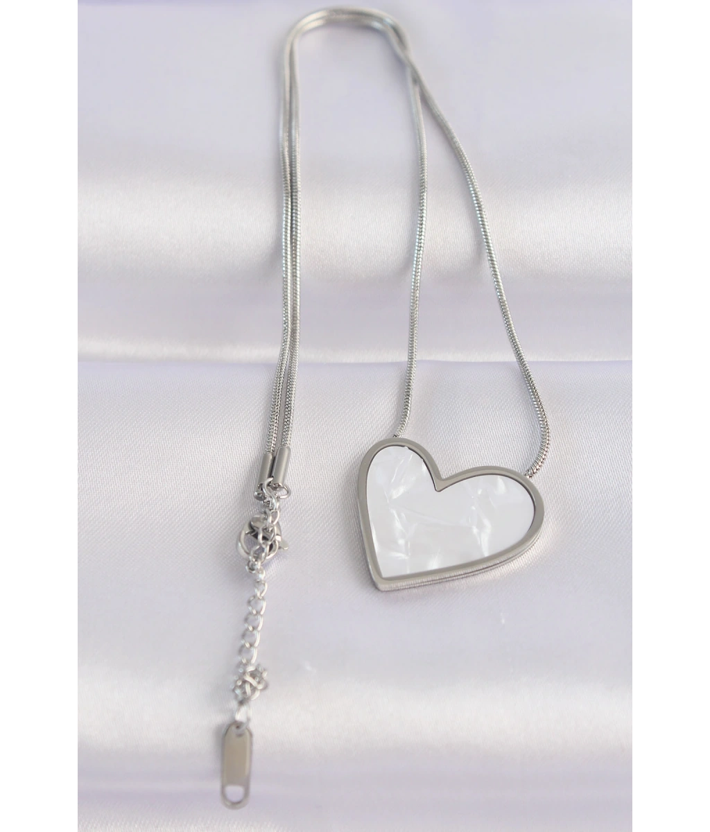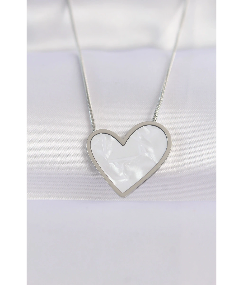 Shoecide 316l Çelik Zincir Gümüş Renk Mermer Desenli Kalp Kolye
