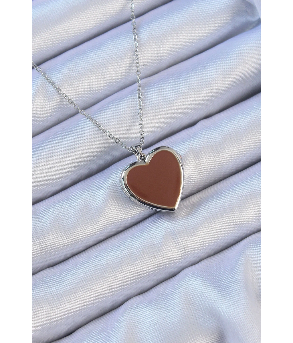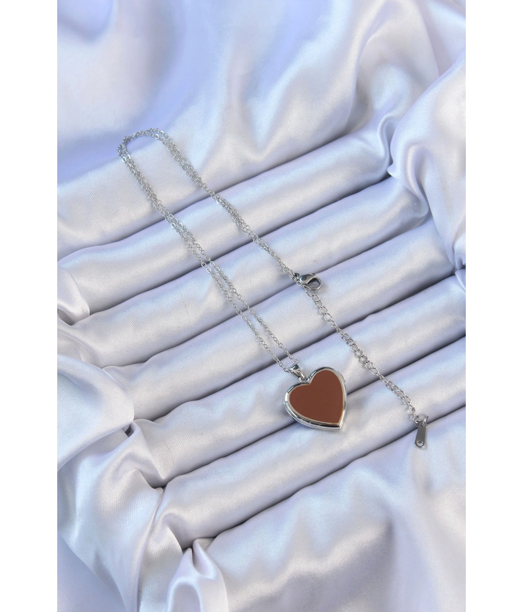 Shoecide 316l Çelik Zincir Gümüş Renk Mineli İçi Açılan Kalp Kolye