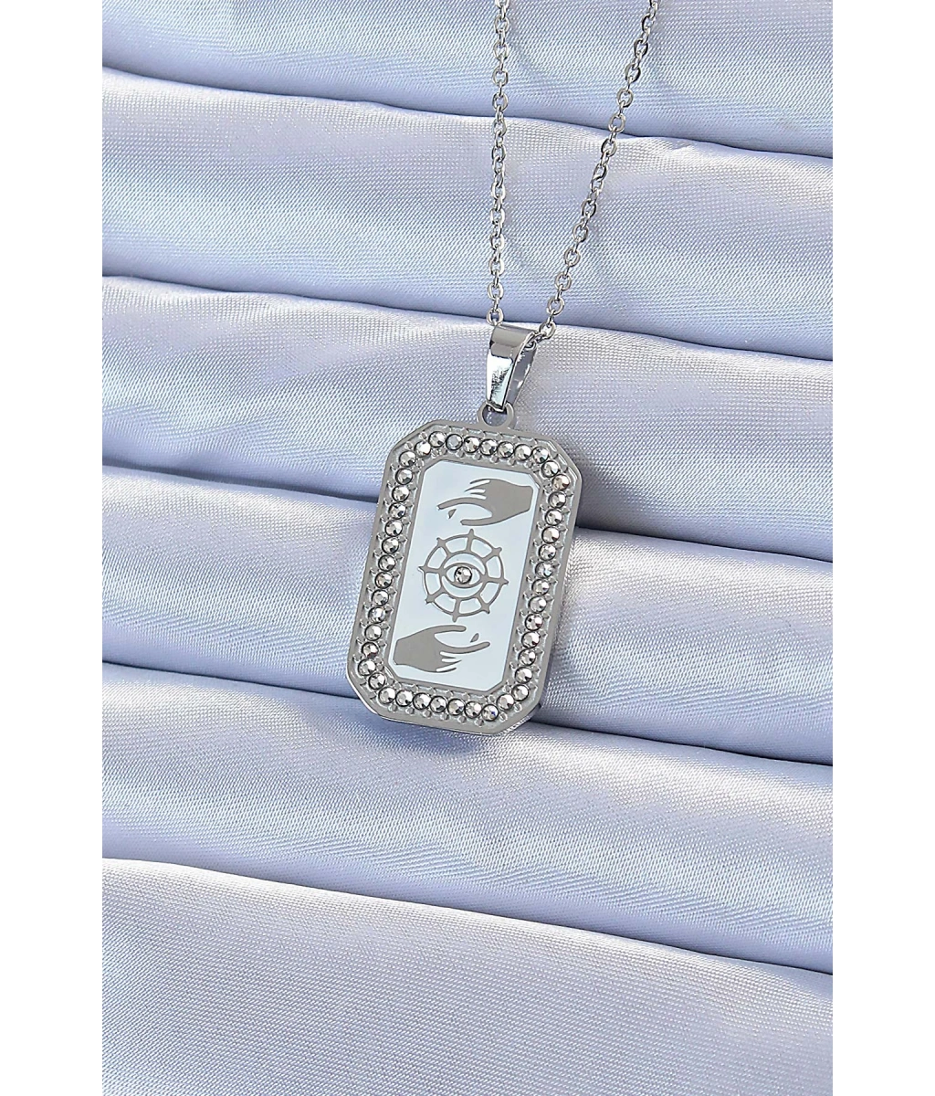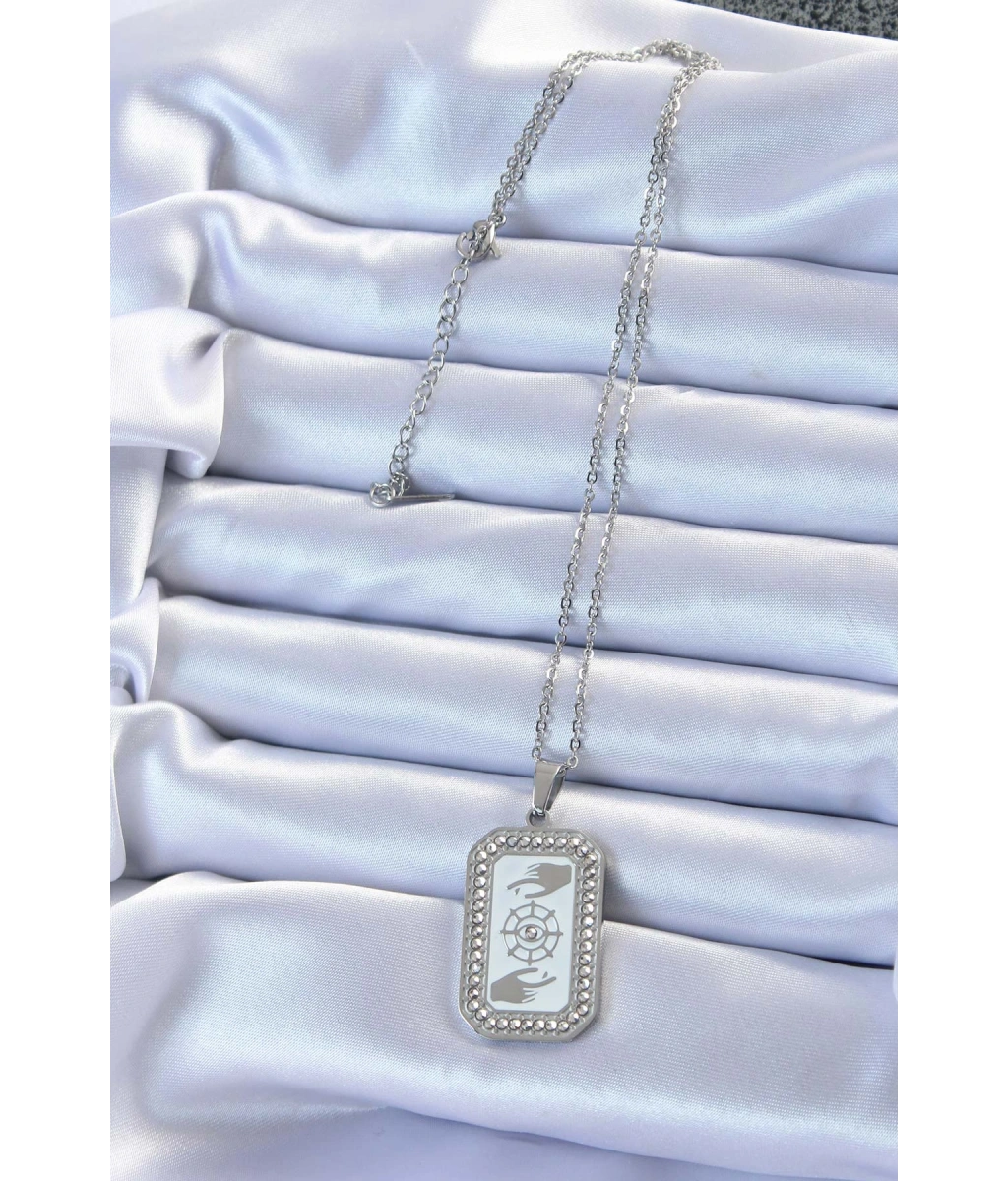 Shoecide 316l Çelik Zincir Gümüş Renk Mineli Zirkon Taşlı Göz Figür Tarot Kolye