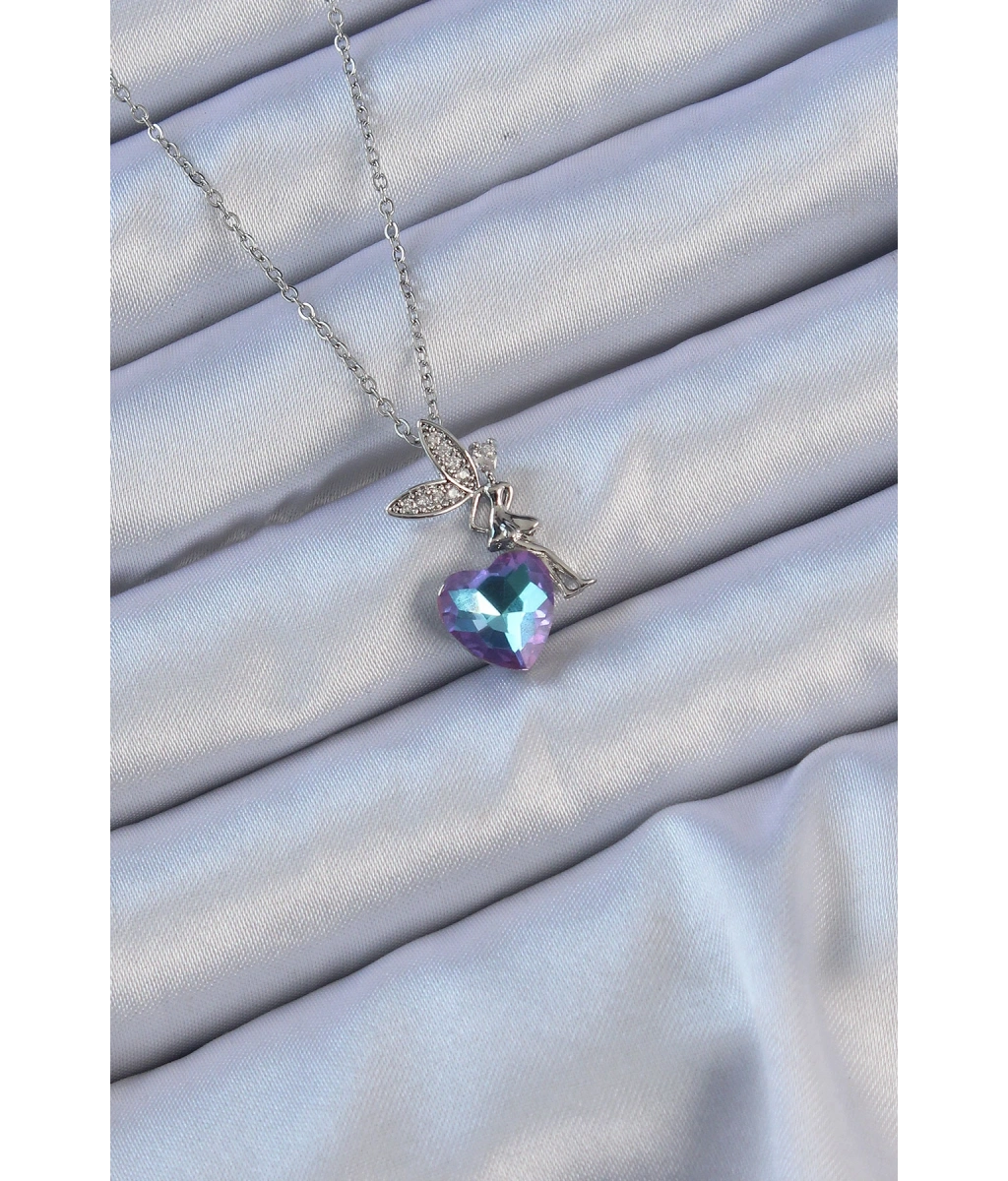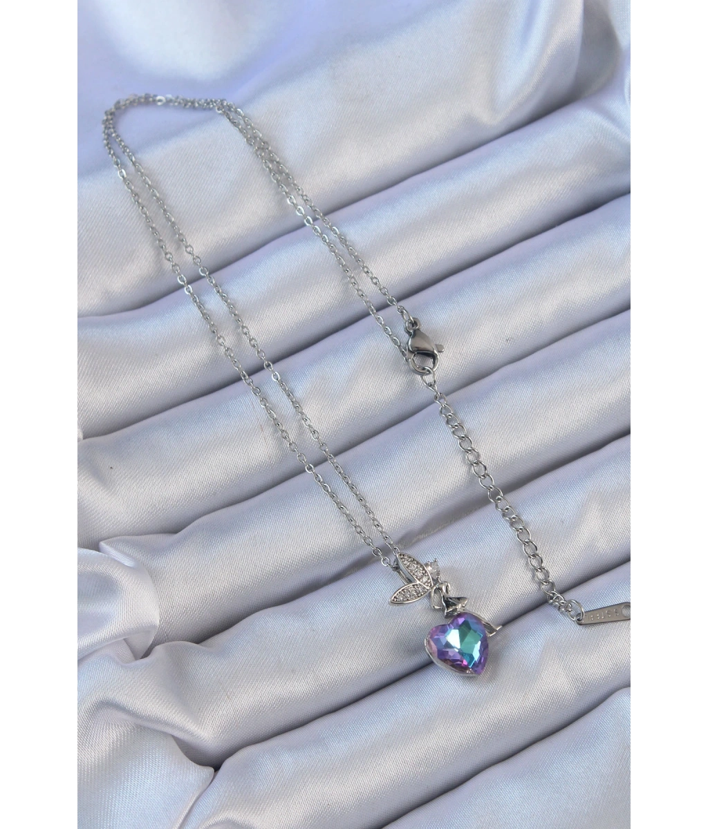 Shoecide 316l Çelik Zincir Gümüş Renk Mor Mavi Renk Zirkon Taşlı Kalp Detay Peri Kolye