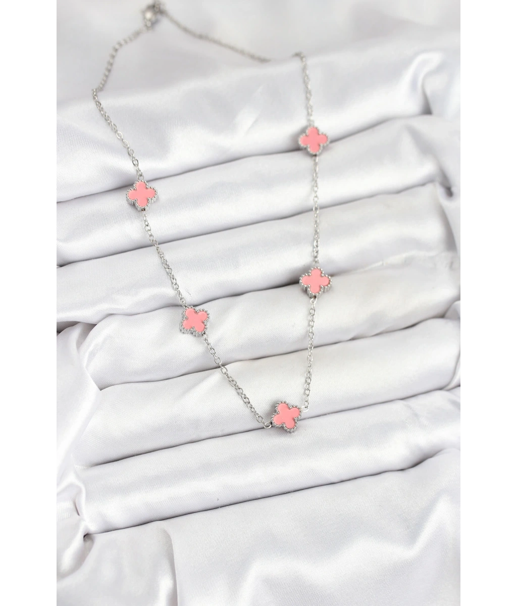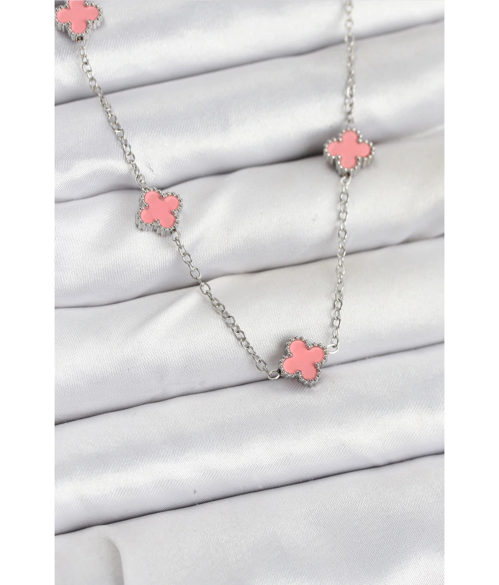 Shoecide 316l Çelik Zincir Gümüş Renk Pembe Baby Boy Yonca Kadın Kolye