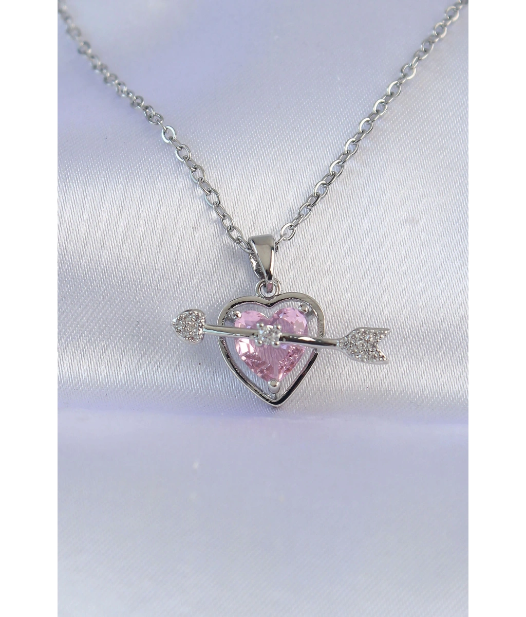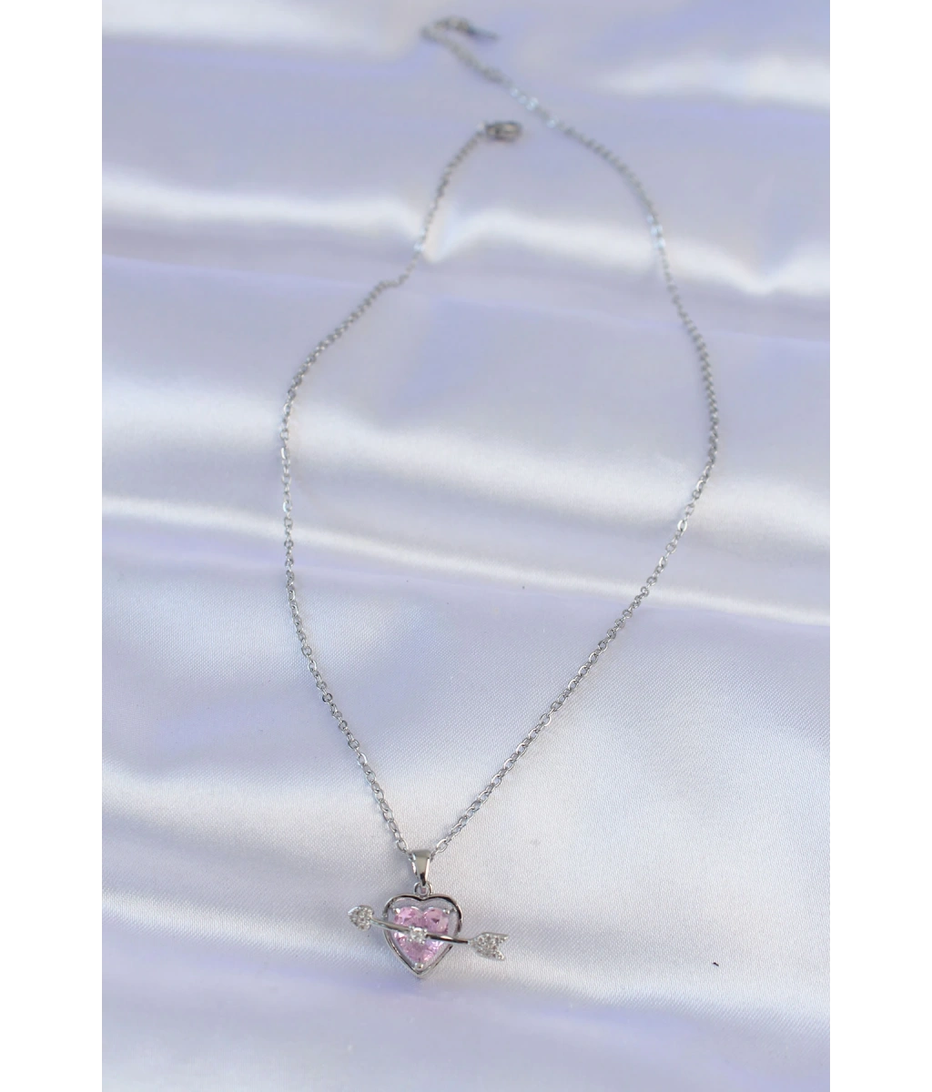 Shoecide 316l Çelik Zincir Gümüş Renk Pembe Zirkon Taşlı Eros Kolye