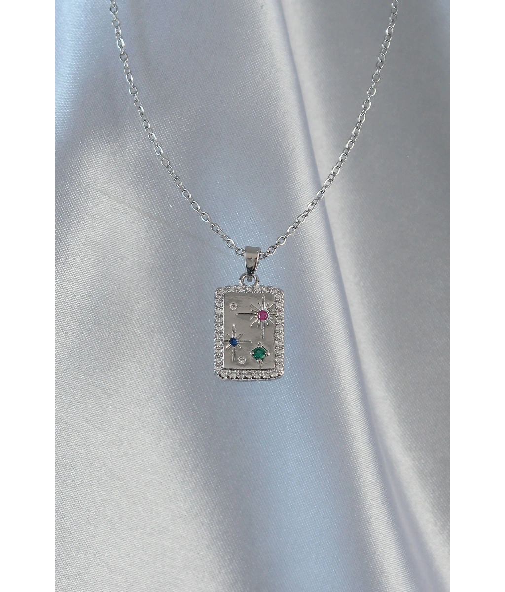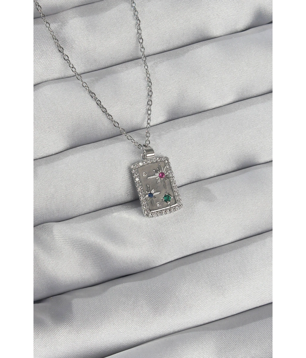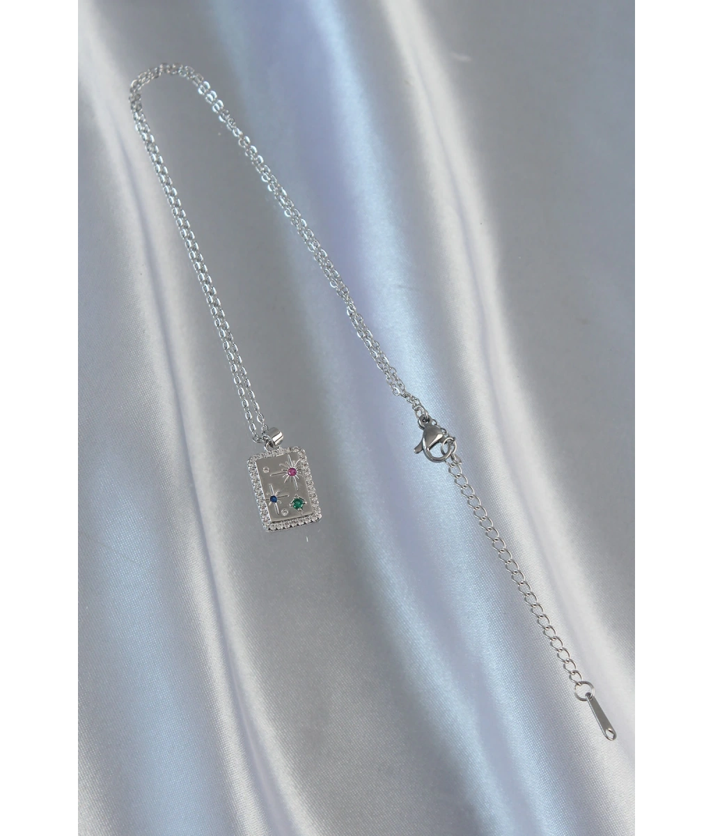 Shoecide 316l Çelik Zincir Gümüş Renk Renkli Zirkon Taşlı Vintage Kolye