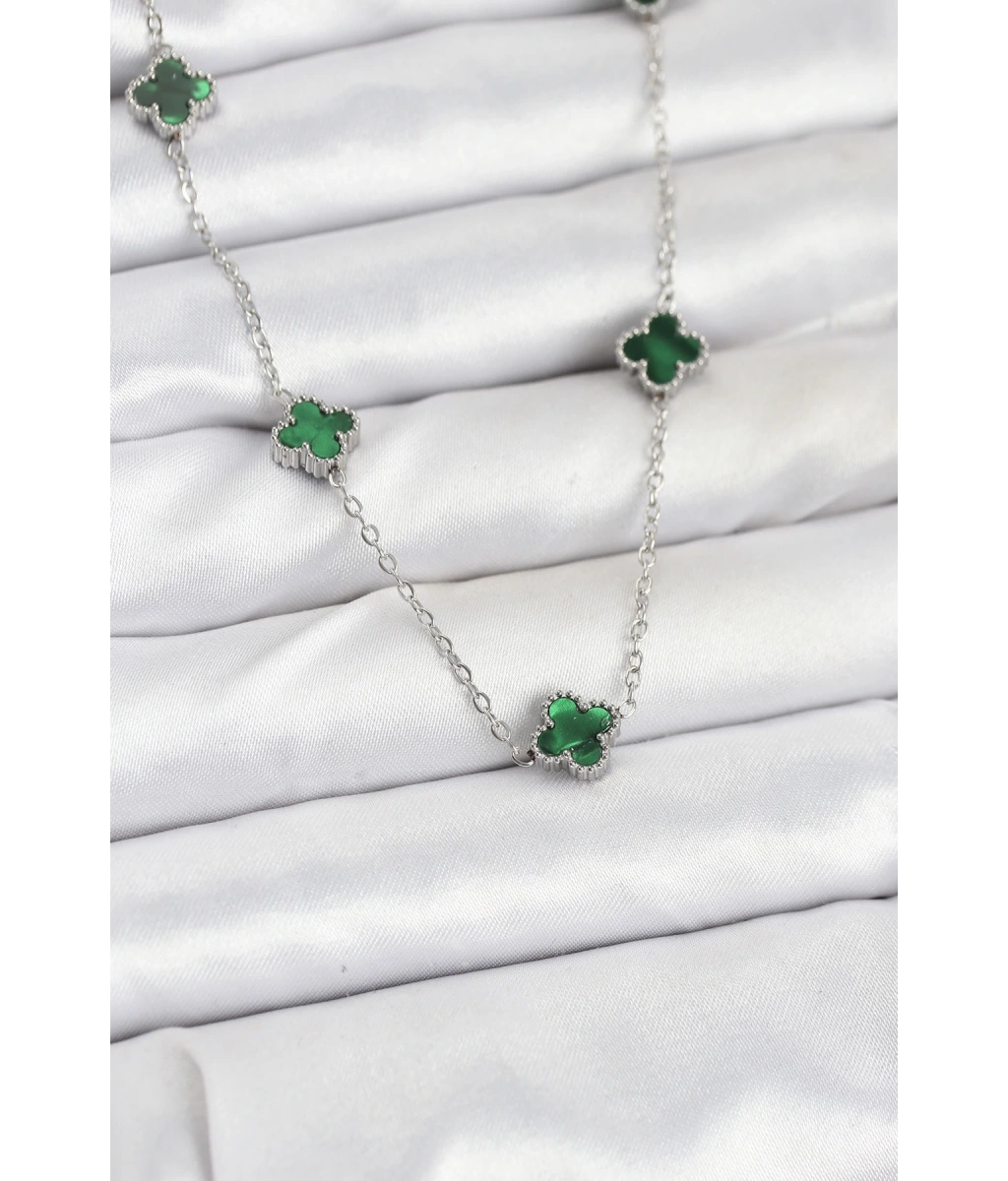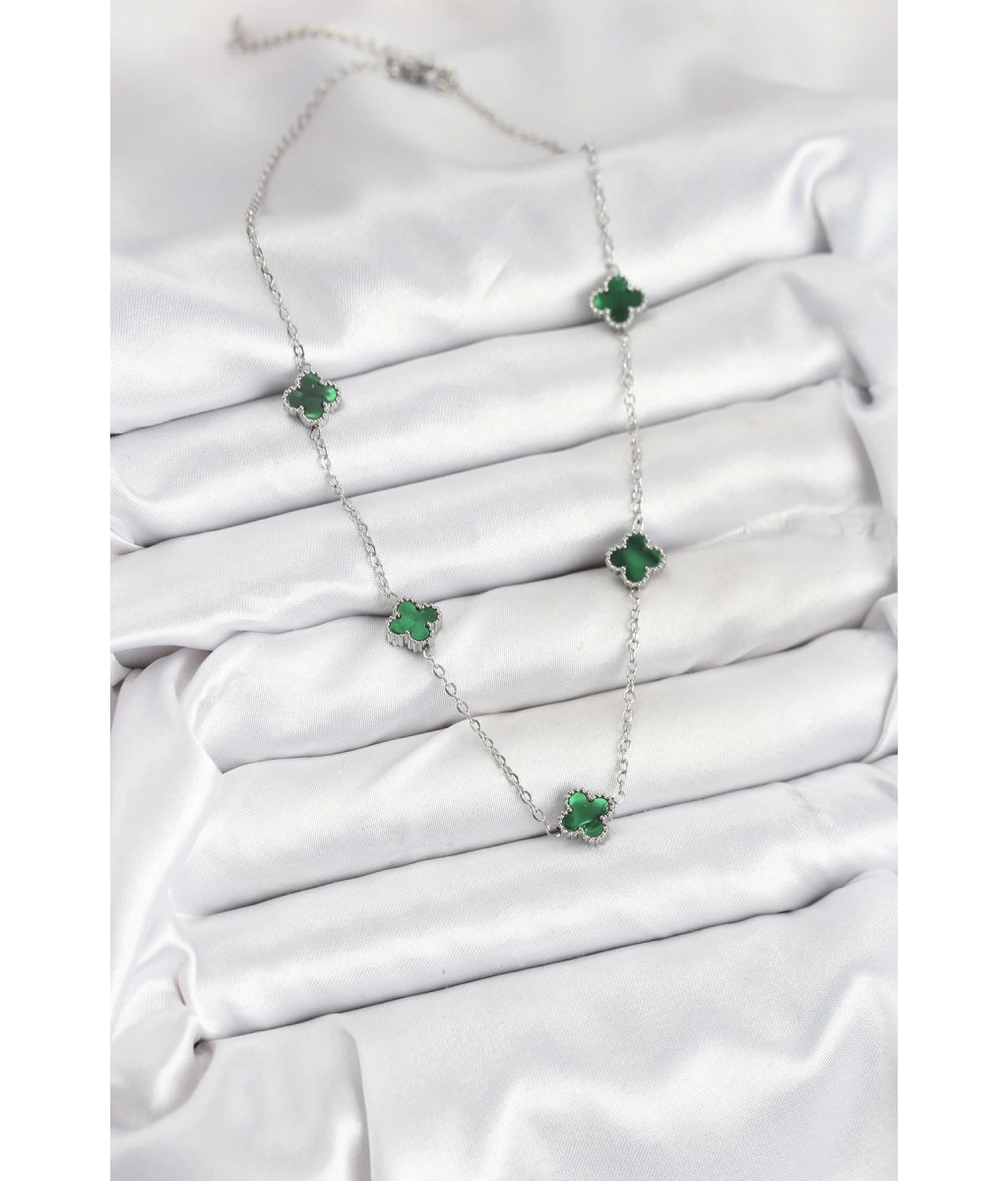Shoecide 316l Çelik Zincir Gümüş Renk Yeşil Baby Boy Yonca Kadın Kolye