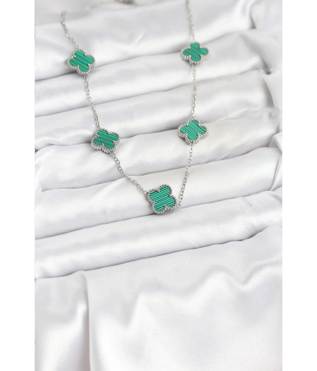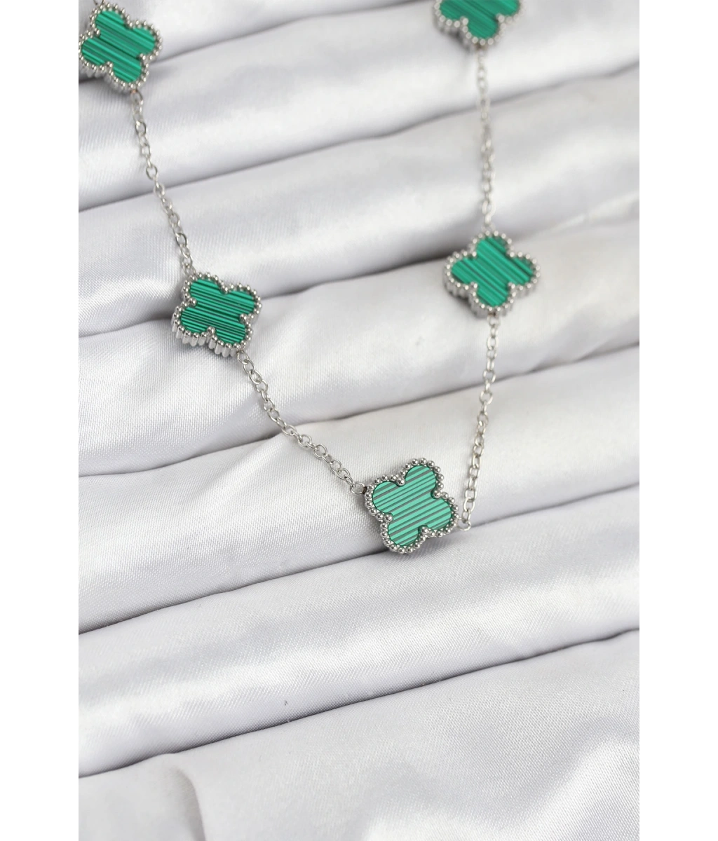 Shoecide 316l Çelik Zincir Gümüş Renk Yeşil Yonca Kadın Kolye
