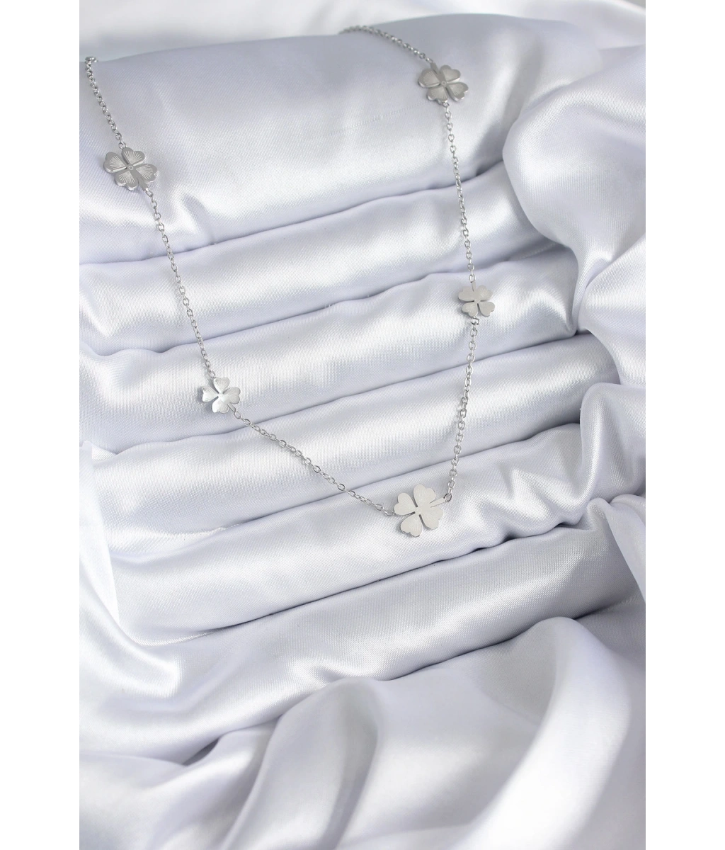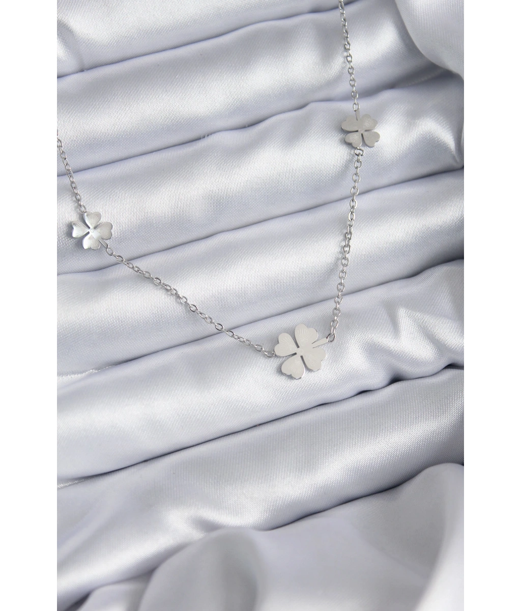 Shoecide 316l Çelik Zincir Gümüş Renk Yonca Model Kadın Kolye