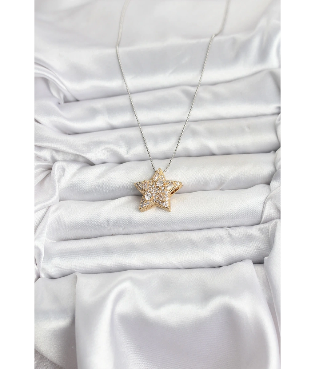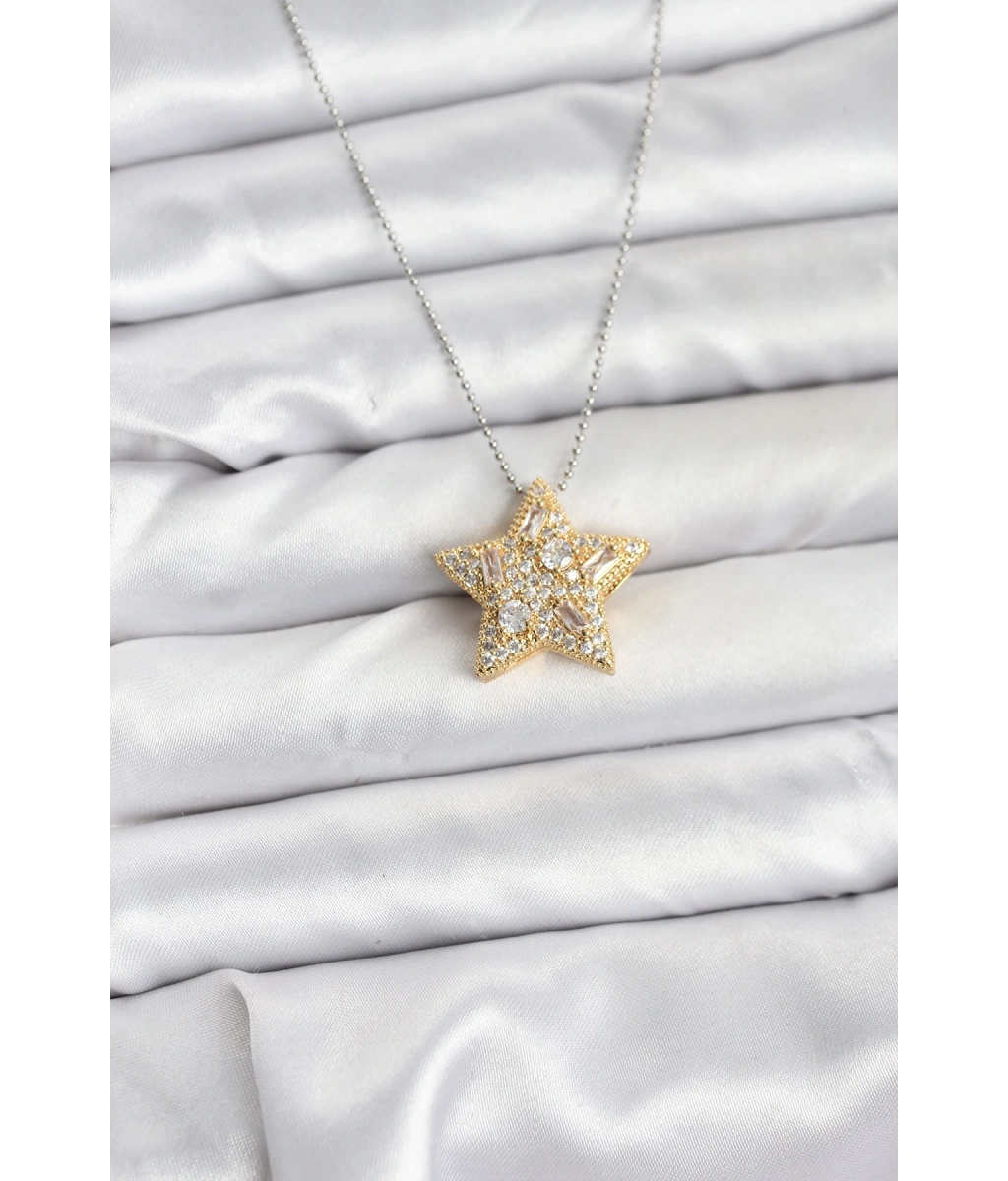 Shoecide 316l Çelik Zincir Gümüş Renk Zincirli Gold Yıldız Model Kadın Kolye