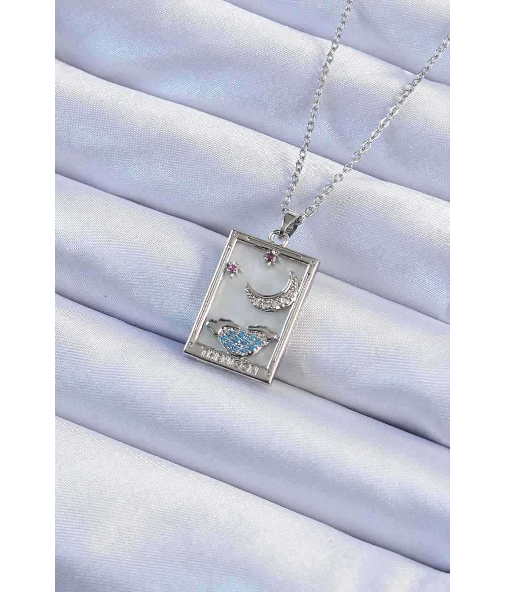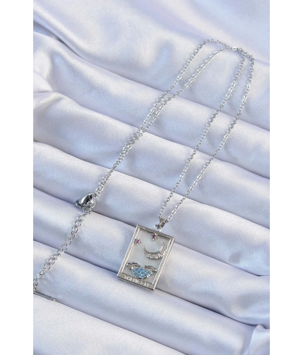 Shoecide 316l Çelik Zincir Gümüş Renk Zirkon Taşlı Ay Figürlü Tarot Kolye