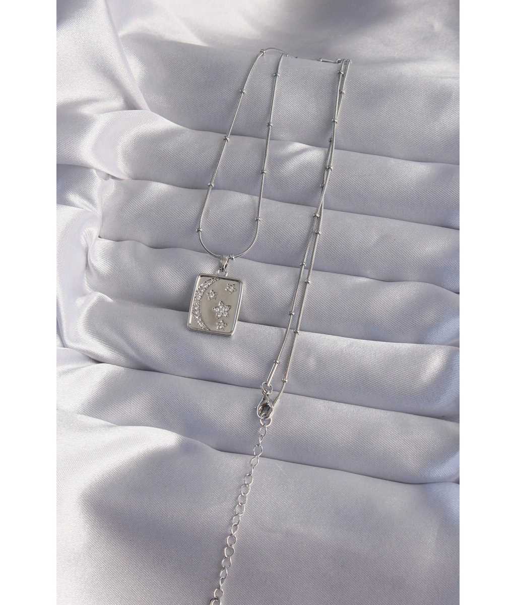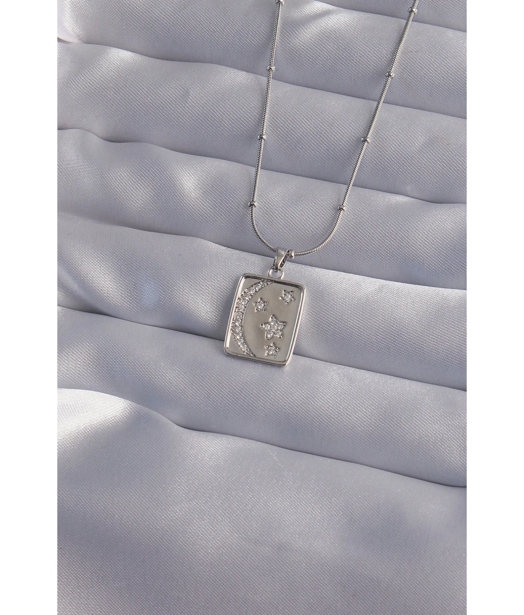 Shoecide 316l Çelik Zincir Gümüş Renk Zirkon Taşlı Ay Yıldız Figürlü Tarot Kolye