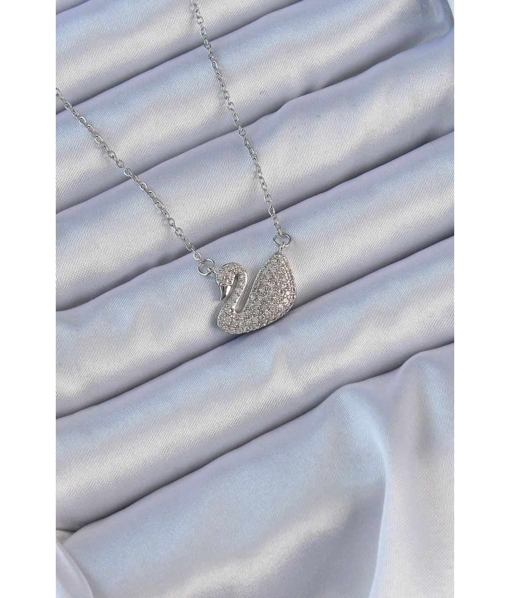 Shoecide 316l Çelik Zincir Gümüş Renk Zirkon Taşlı Kuğu Kolye