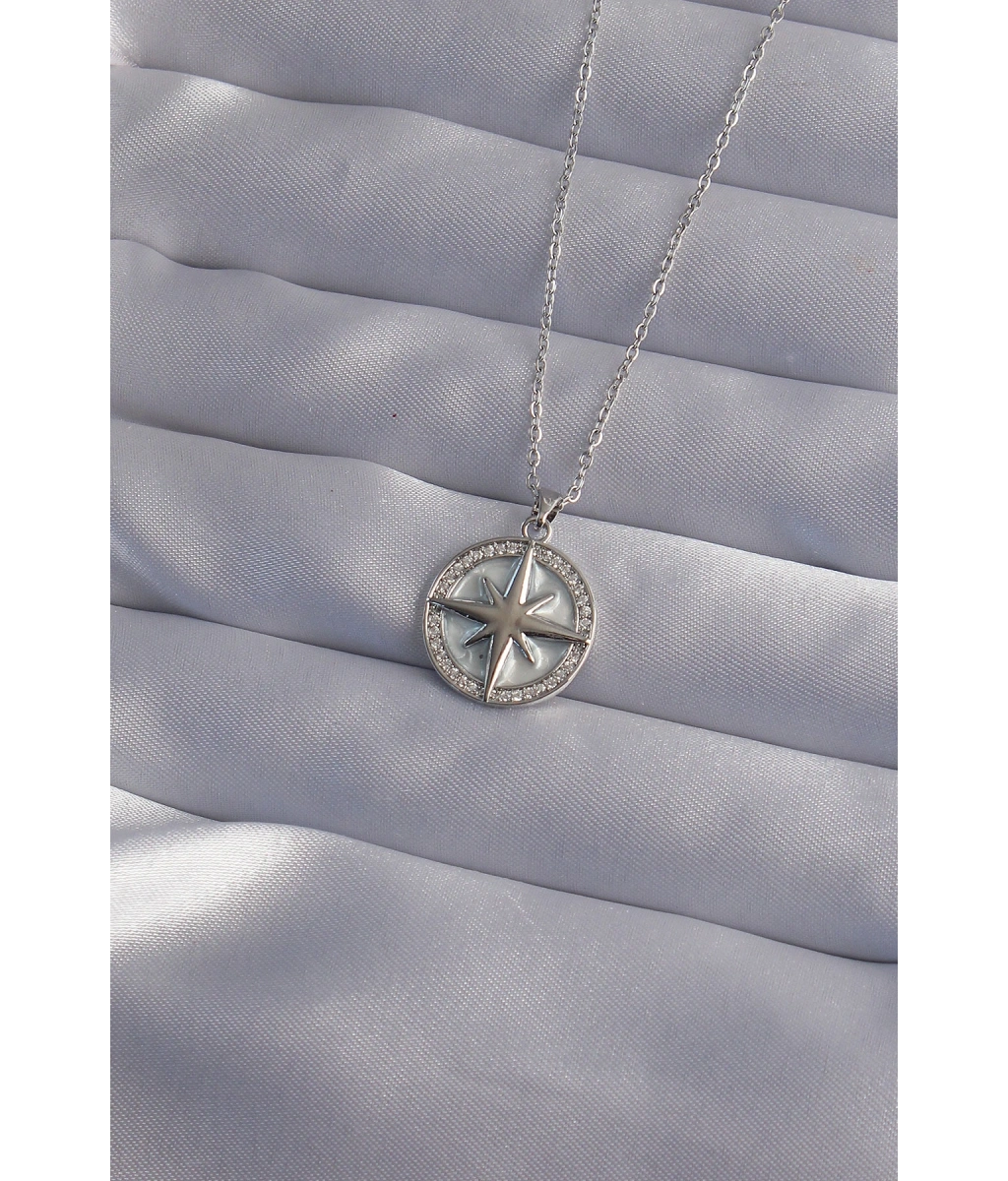 Shoecide Zirkon Taşlı Kutup Yıldızı Model Pirinç Gümüş Renk Kadın Kolye