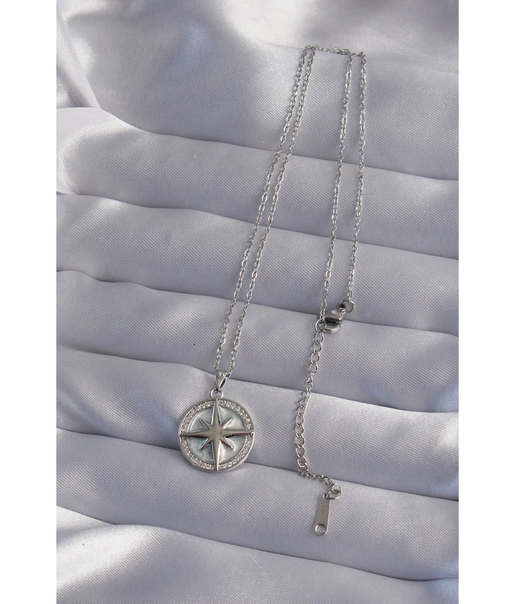 Shoecide 316l Çelik Zincir Gümüş Renk Zirkon Taşlı Kutup Yıldızı Kolye