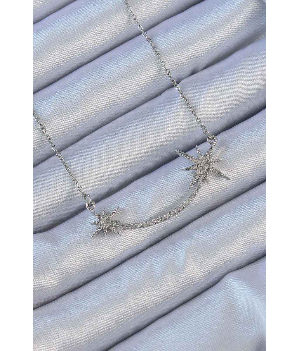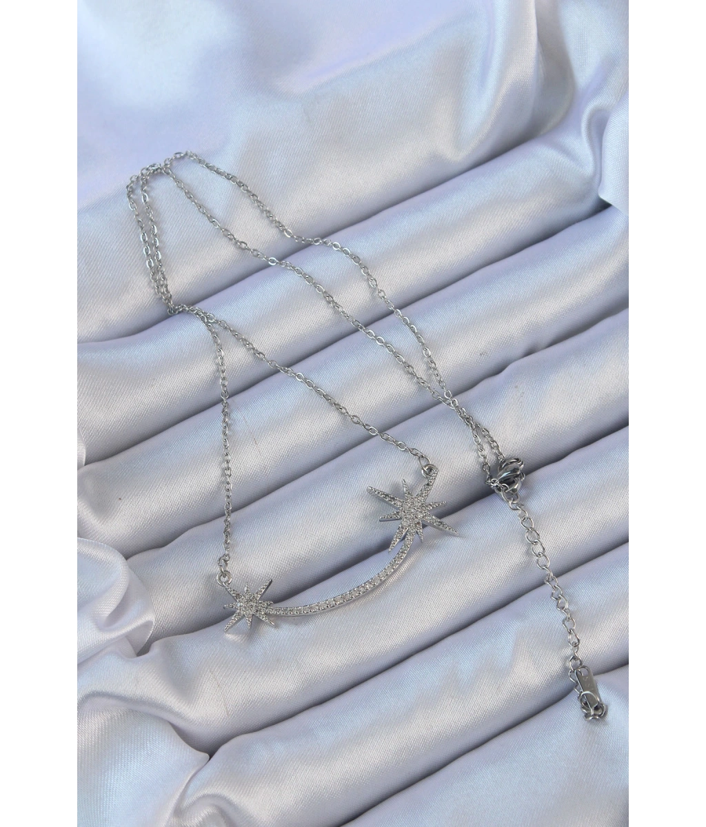 Shoecide 316l Çelik Zincir Gümüş Renk Zirkon Taşlı Kutup Yıldızı Kolye