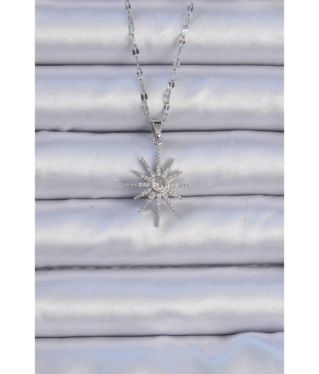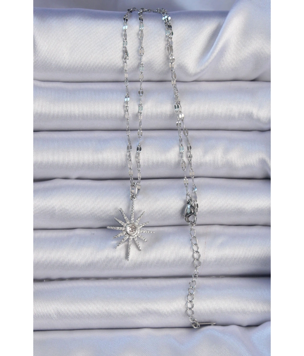 Shoecide 316l Çelik Zincir Gümüş Renk Zirkon Taşlı Kutup Yıldızı Kolye