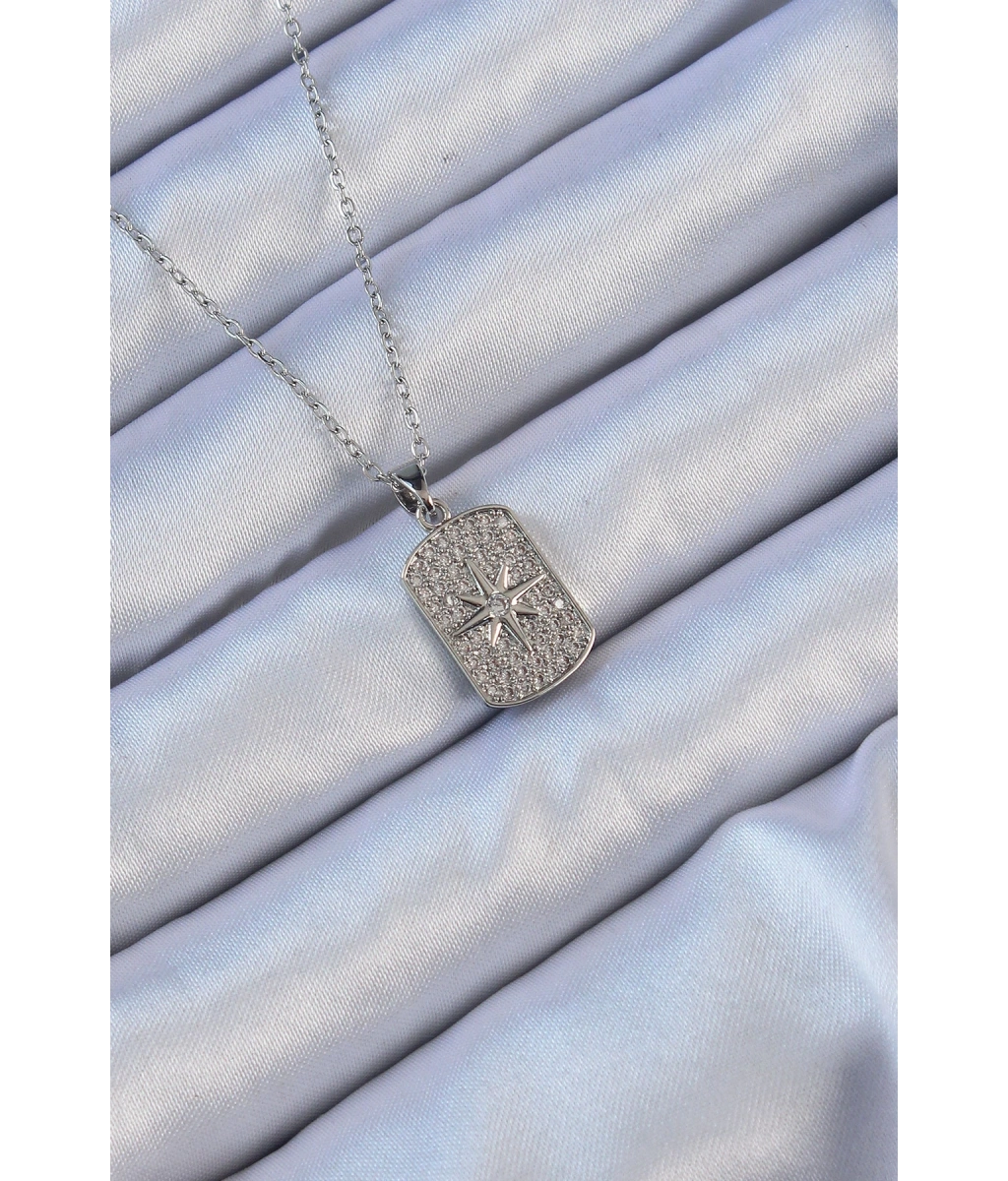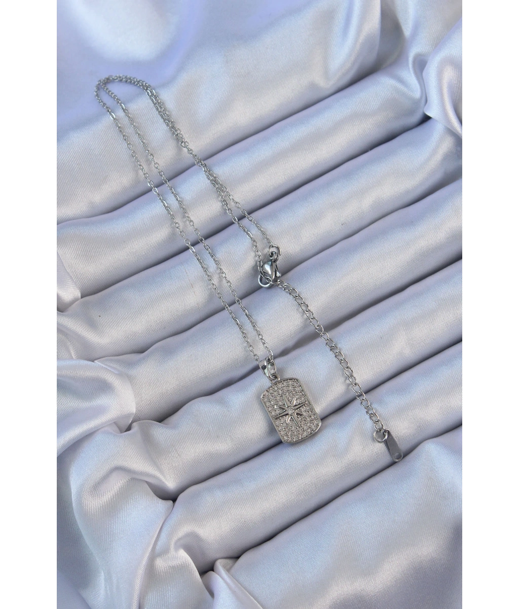 Shoecide 316l Çelik Zincir Gümüş Renk Zirkon Taşlı Kutup Yıldızlı Vintage Kolye