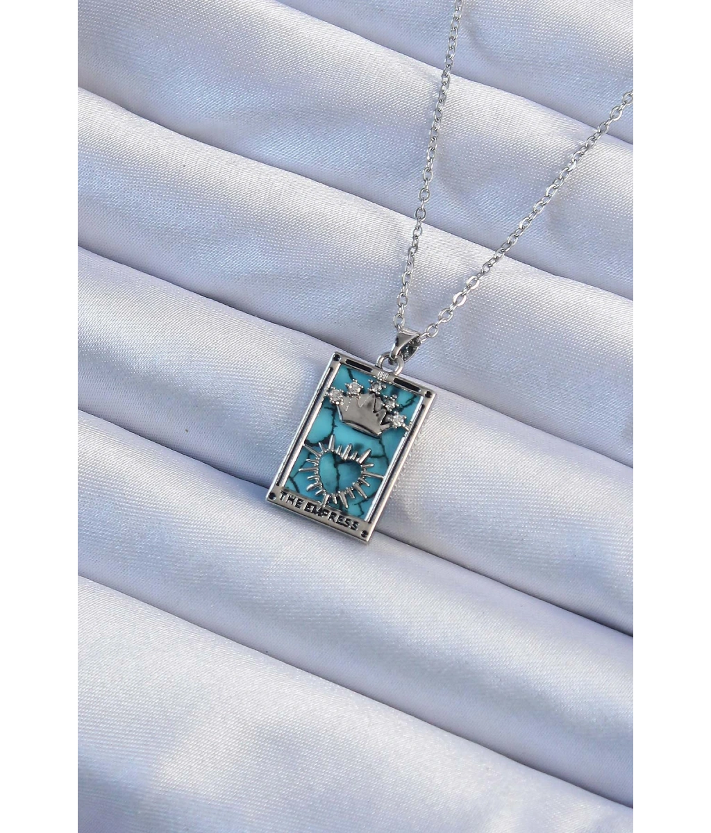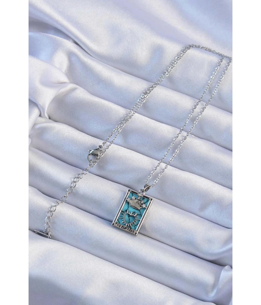 Shoecide 316l Çelik Zincir Gümüş Renk Zirkon Taşlı Mavi Mermer Desenli Taç Model Tarot Kolye