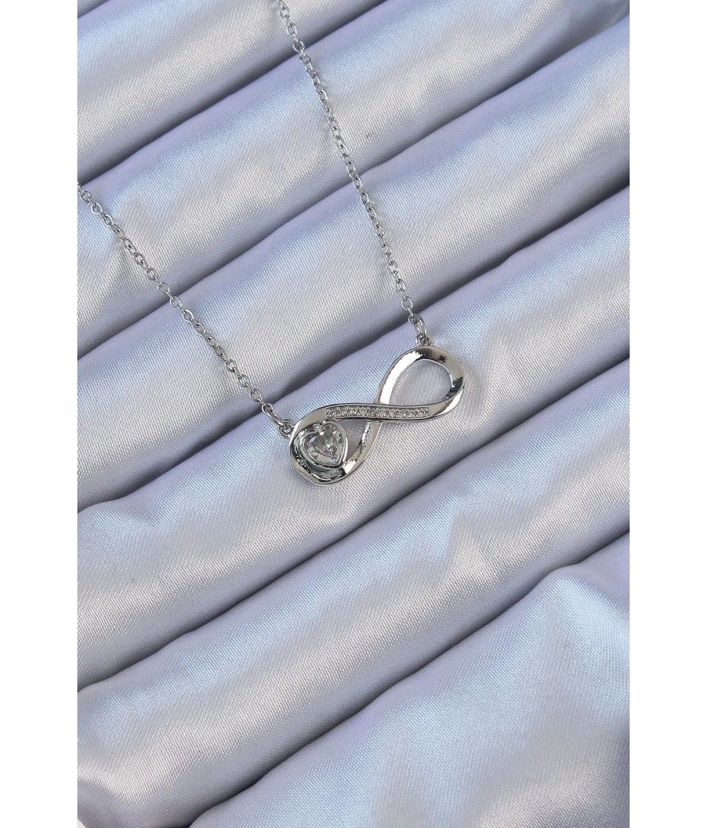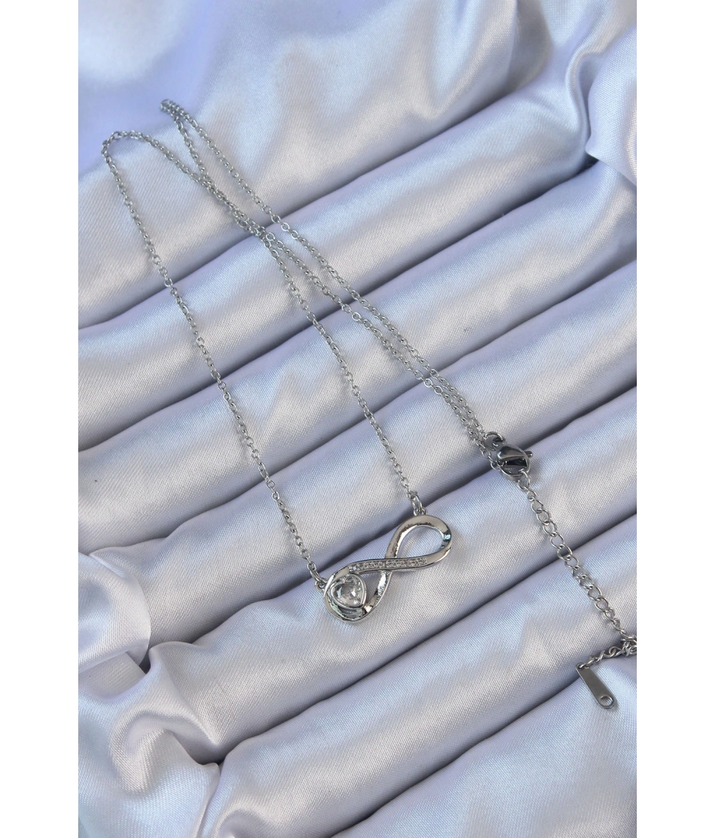 Shoecide 316l Çelik Zincir Gümüş Renk Zirkon Taşlı Minimal Kalp Figür Sonsuzluk Kolye